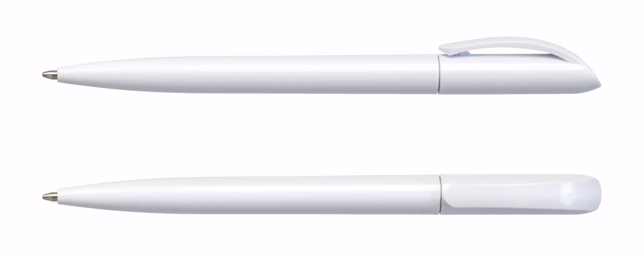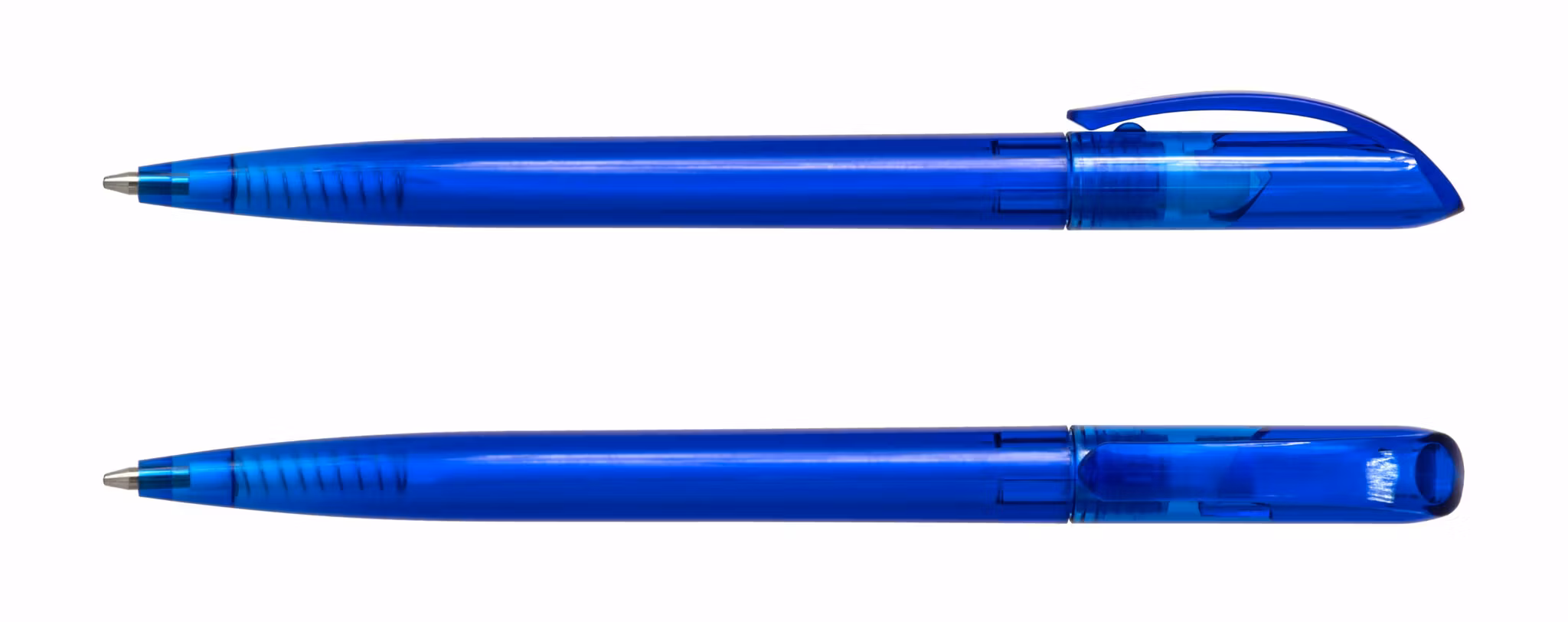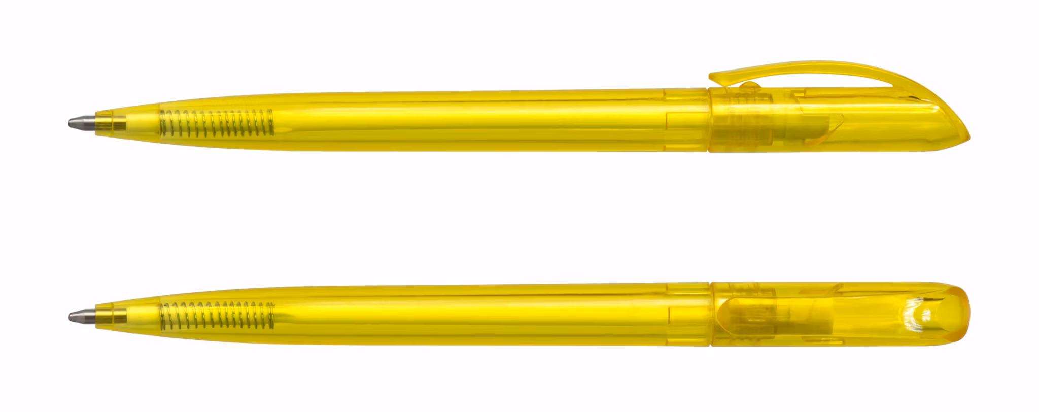Plastpenna med vridmekanism. Välj mellan sju olika färger: vit och svart solid eller någon av de fem olika snygga transparenta färgerna.