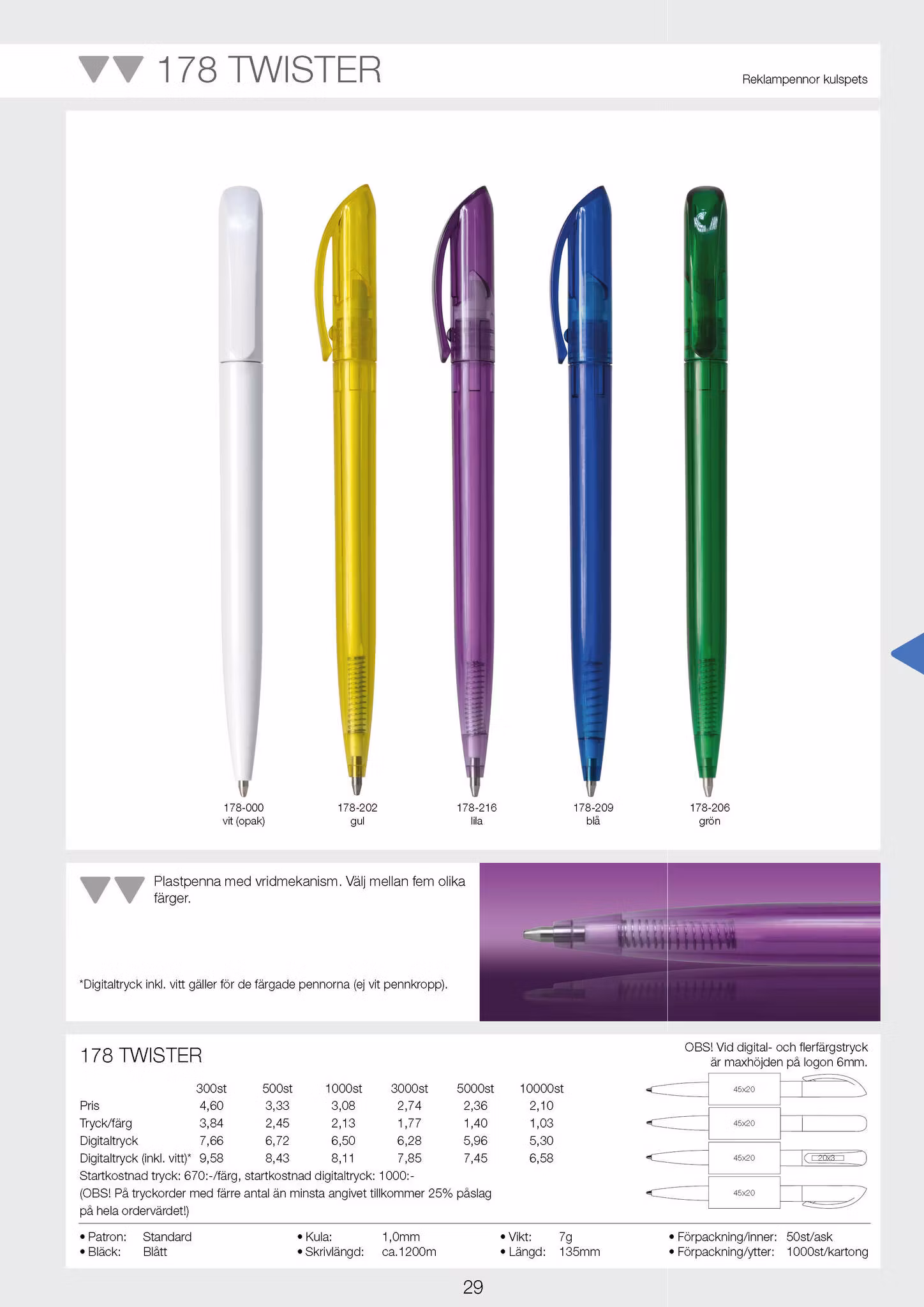 Twister är vår nya twistpenna och finns i sju olika färger. Vi skulle vilja kalla den en lättviktare med stor potential. Funktionell och mycket prisvärd.