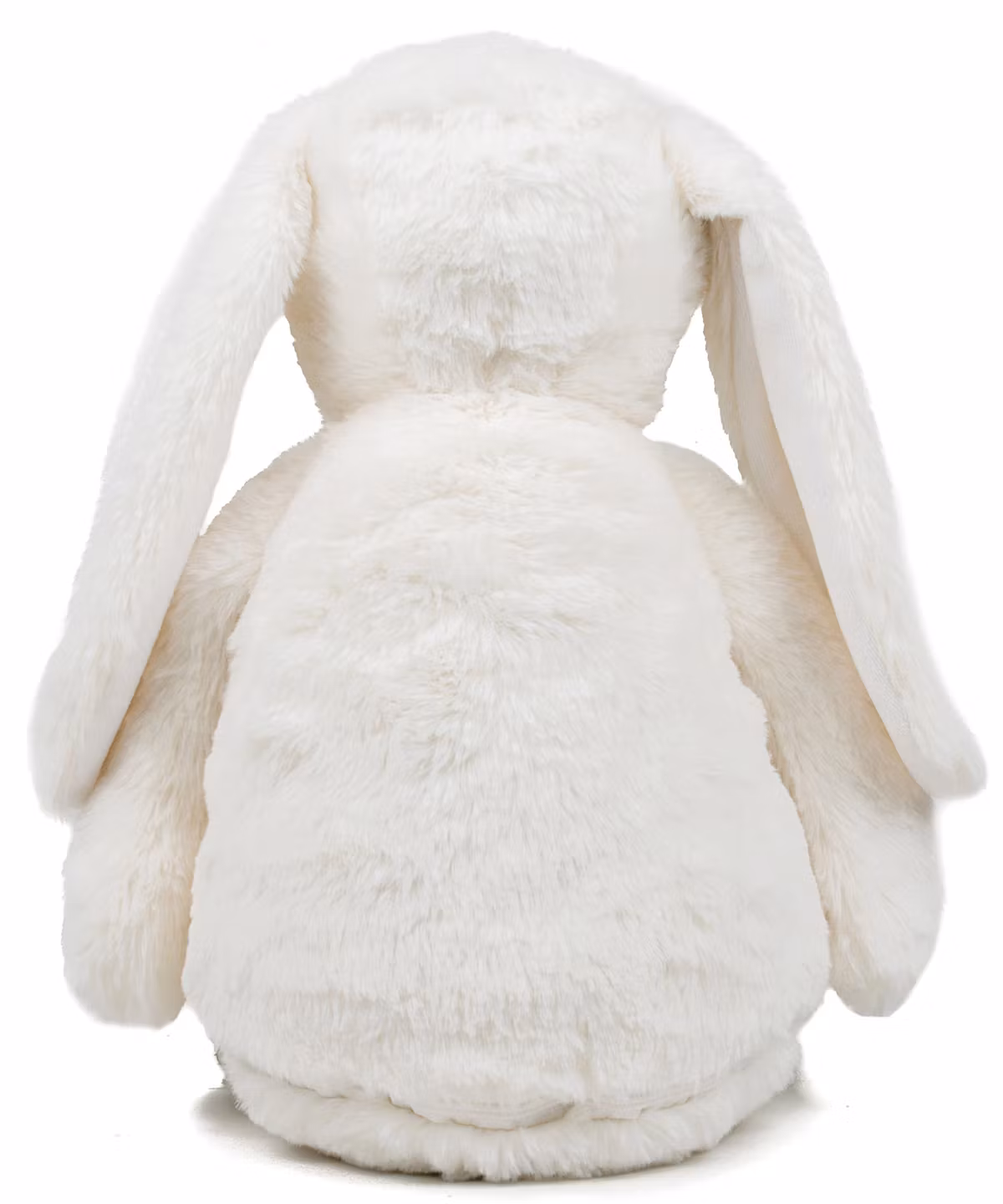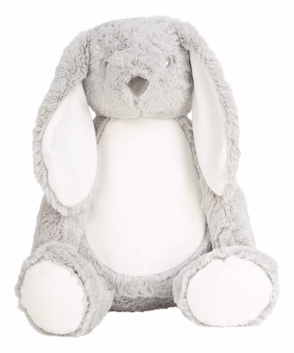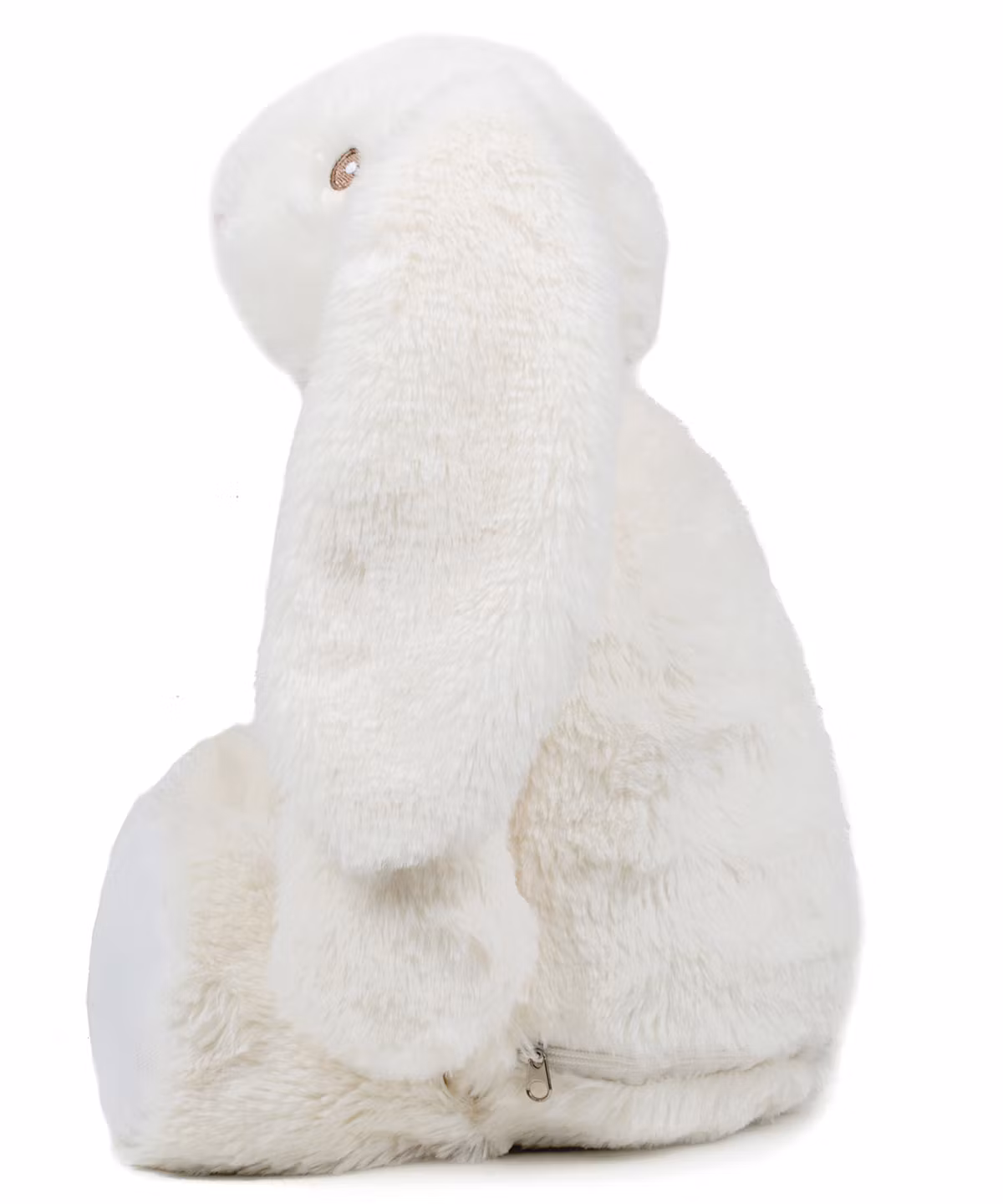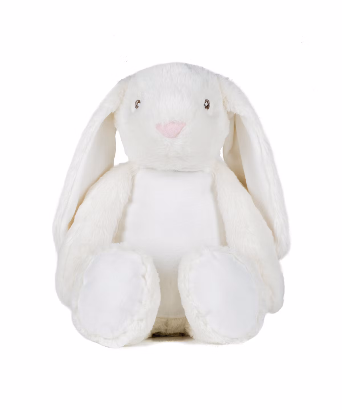 Hop along with the Zippier bunny with soft plush fur and lovable floppy ears. The bunny's tummy is easily embroidered and printed with zip access at base.