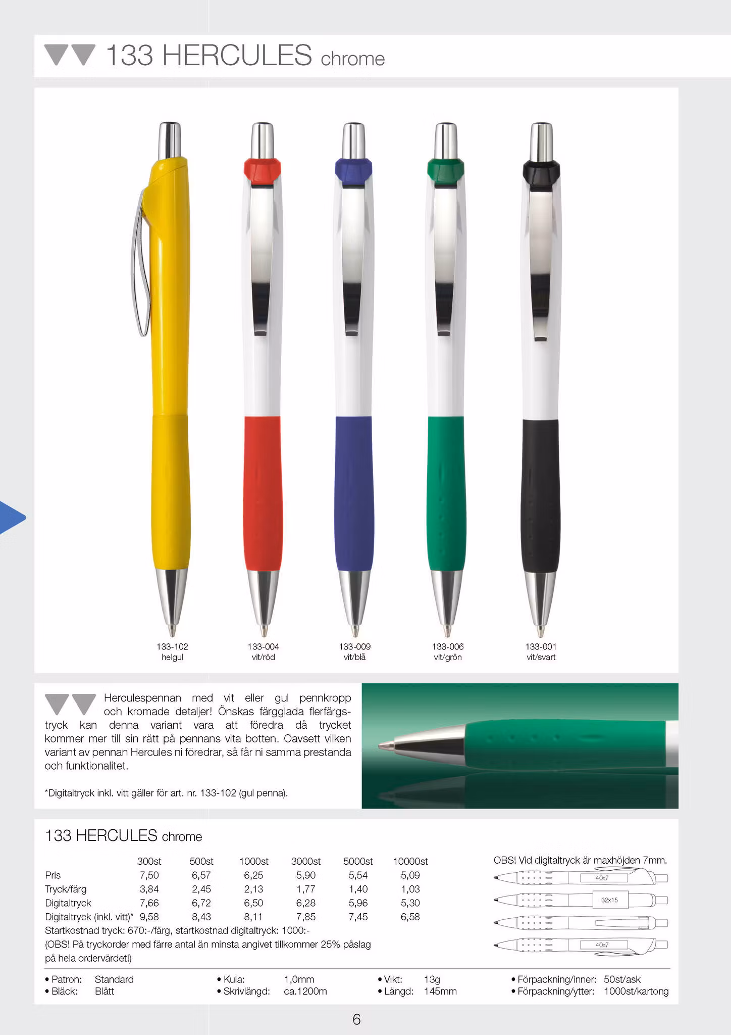*Digitaltryck inkl. vitt gäller för art. nr. 133-102 (gul penna).