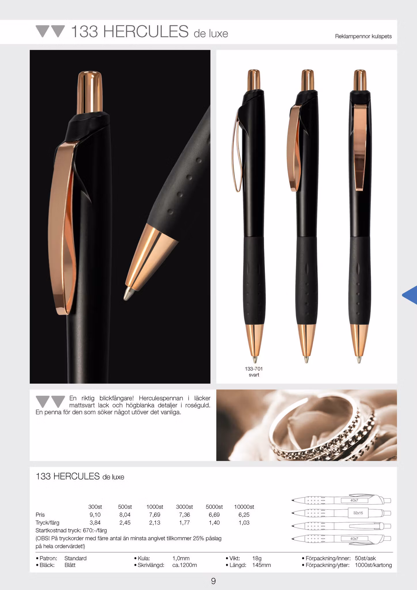 En riktig blickfångare! Herculespennan i läcker mattsvart lack och högblanka detaljer i roséguld.