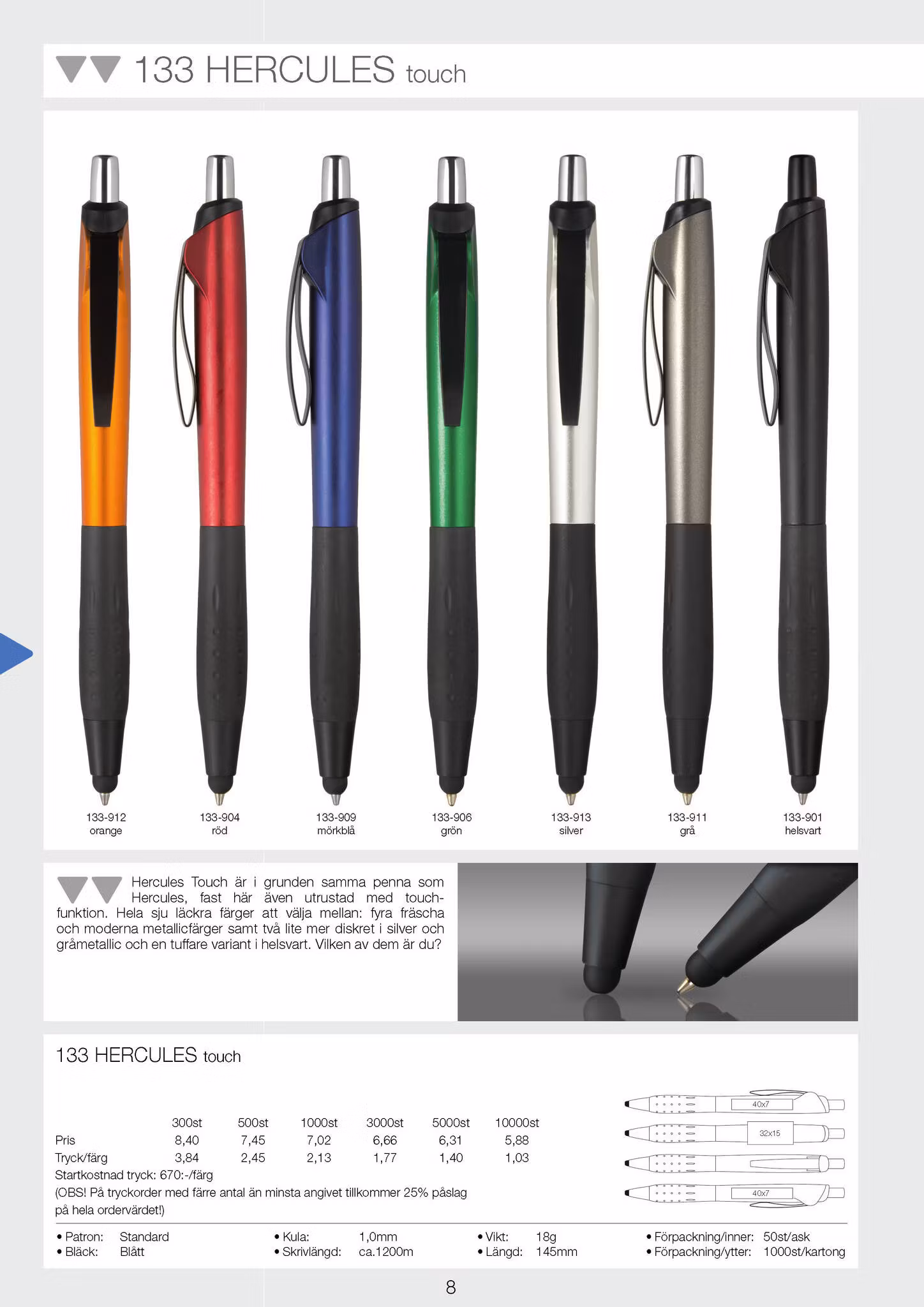 Hercules Touch är i grunden samma penna som Hercules, fast här även utrustad med touchfunktion.