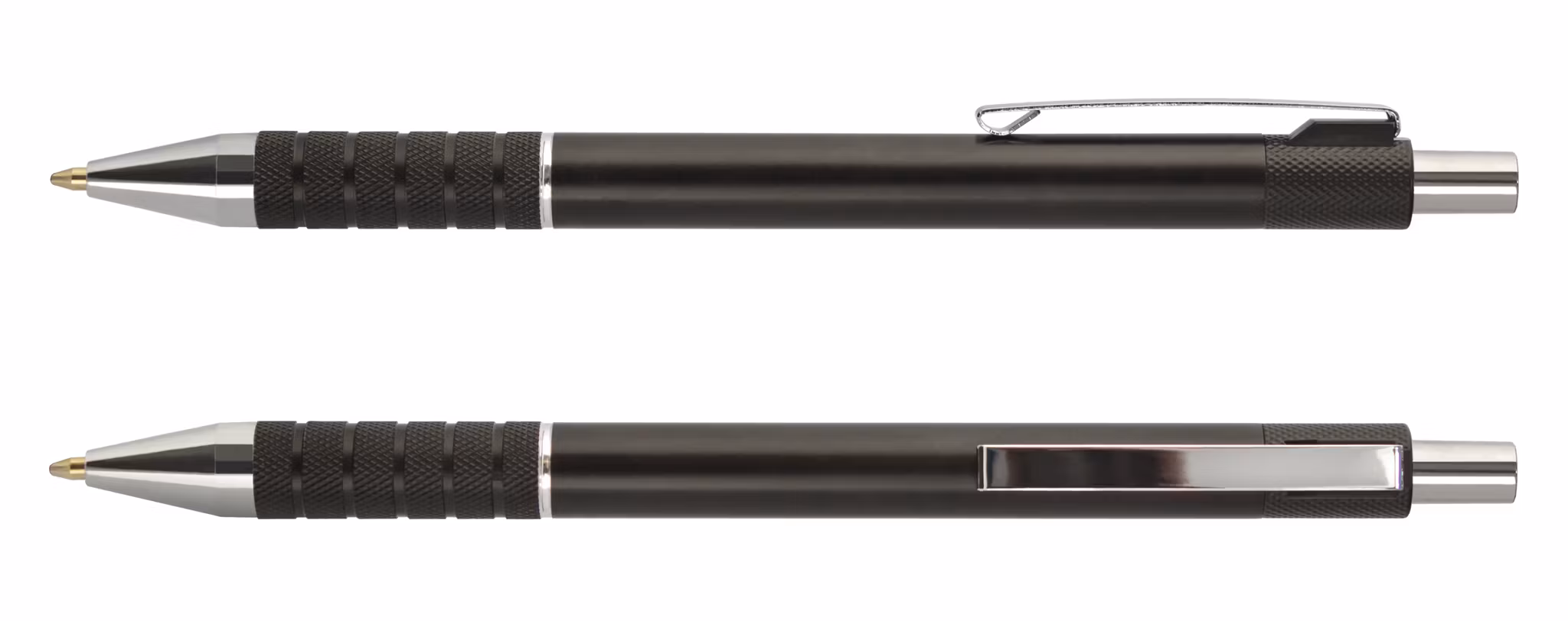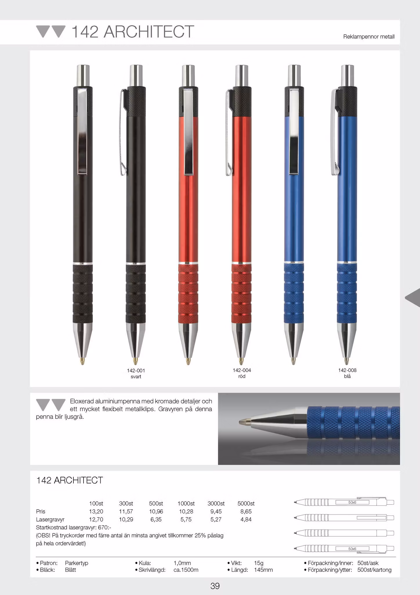 Eloxerad aluminiumpenna med kromade detaljer och ett mycket flexibelt metallklips. Gravyren på denna penna blir ljusgrå.
