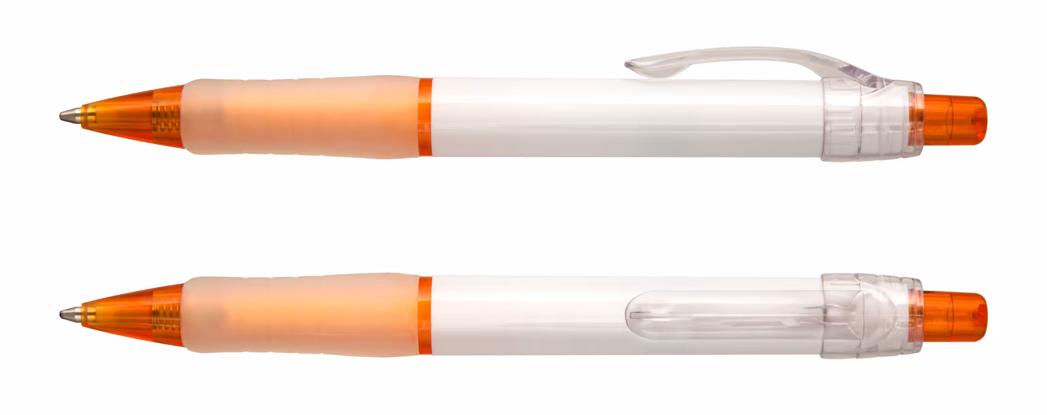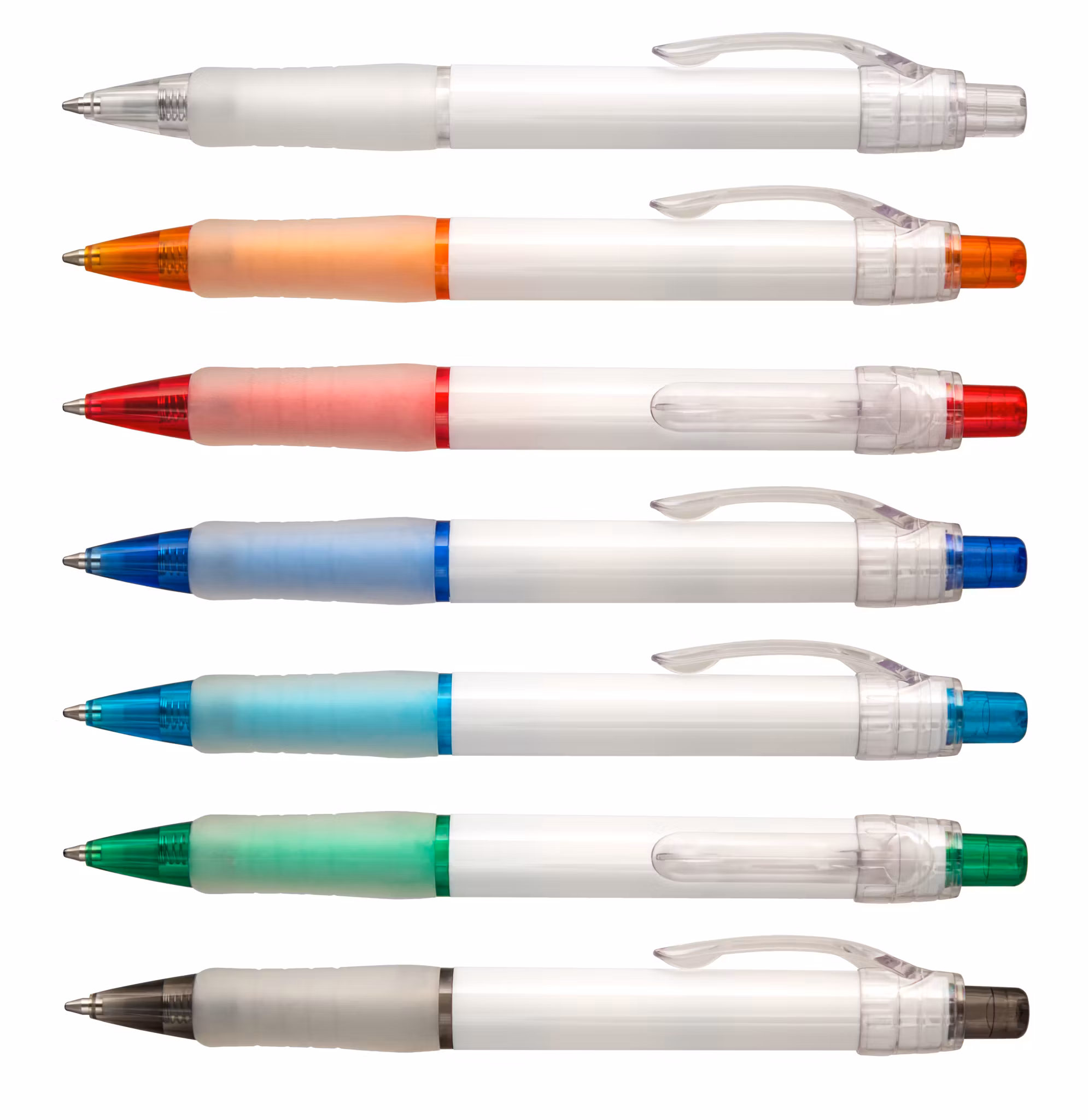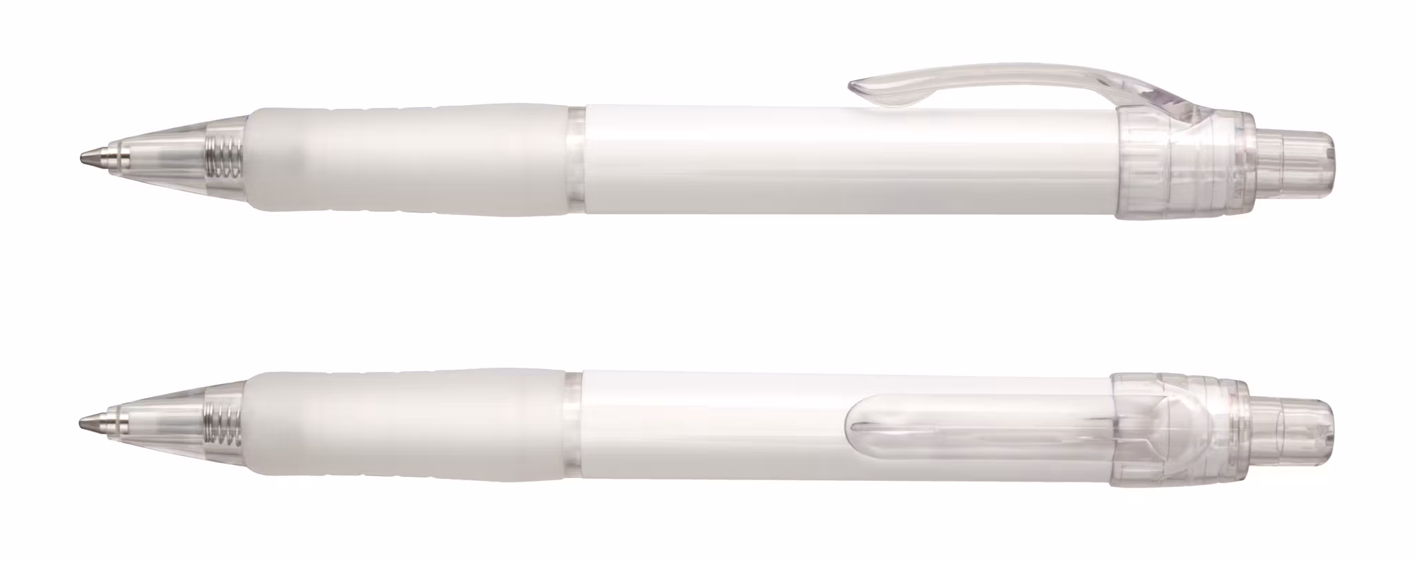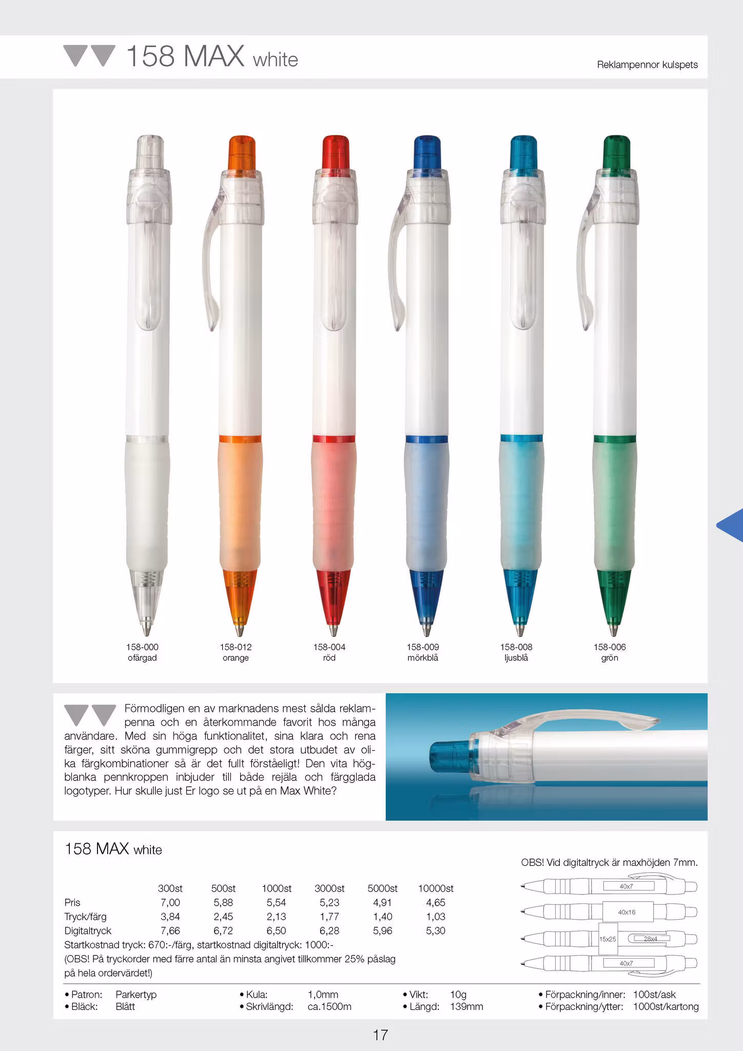 Den vita högblanka pennkroppen inbjuder till både rejäla och färgglada logotyper.