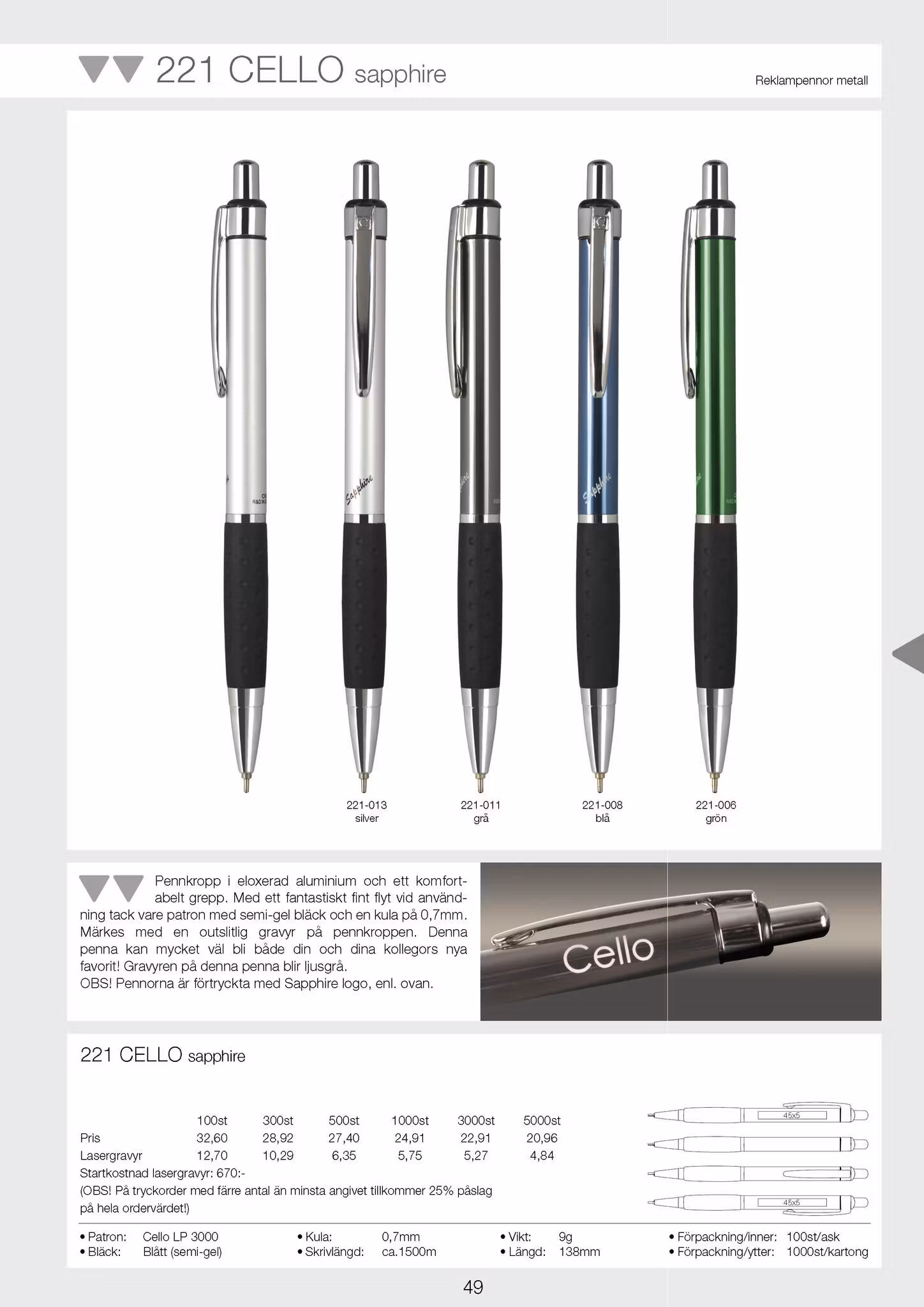 Märkes med en outslitlig gravyr på pennkroppen. Denna penna kan mycket väl bli både din och dina kollegors nya favorit! Gravyren på denna penna blir ljusgrå.