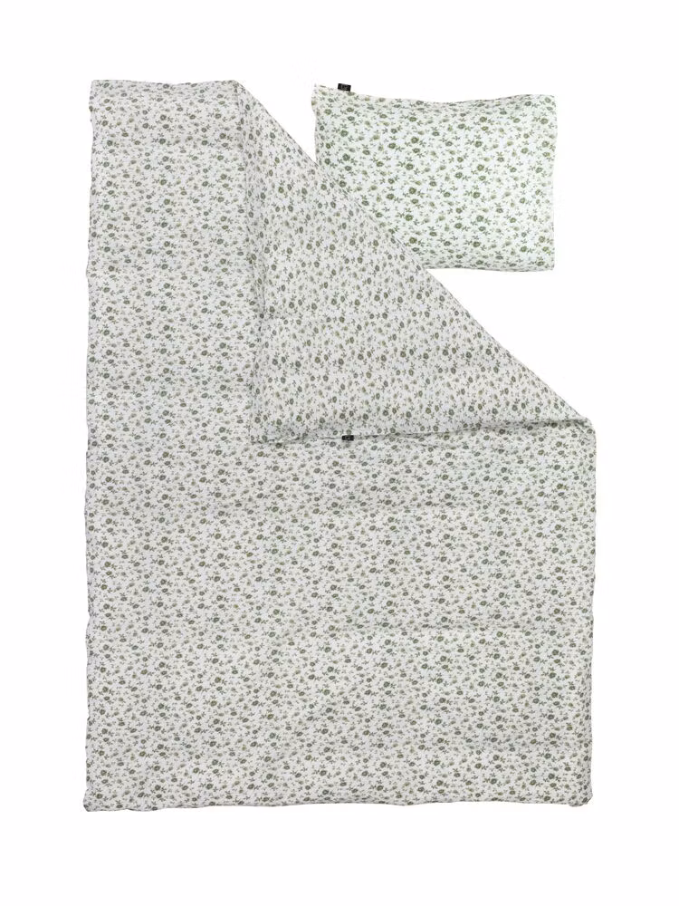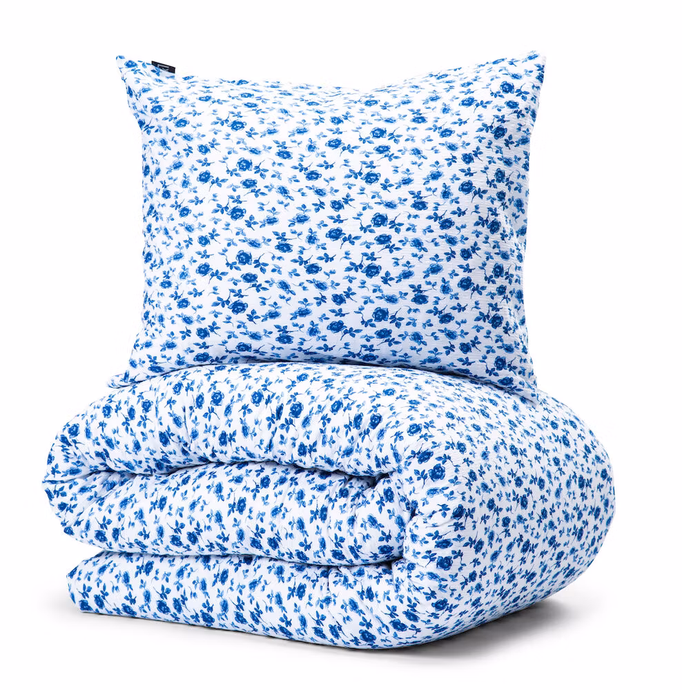 Dröm sött i ett bäddset med klassiskt småblommigt och lantligt mönster. Vävt i skön bäckebölja som ger en svalkande känsla mot huden i sommarvärmen.