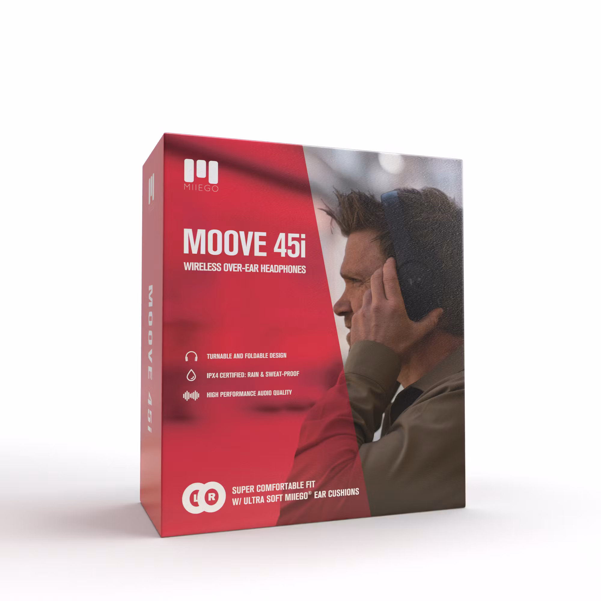 Med sin lätta design är MOOVE45 PRO byggd för ett bekvämt liv på språng, och de ultramjuka MIIEGO-öronkuddarna i PU-läder sitter tätt och bekvämt på öronen.
