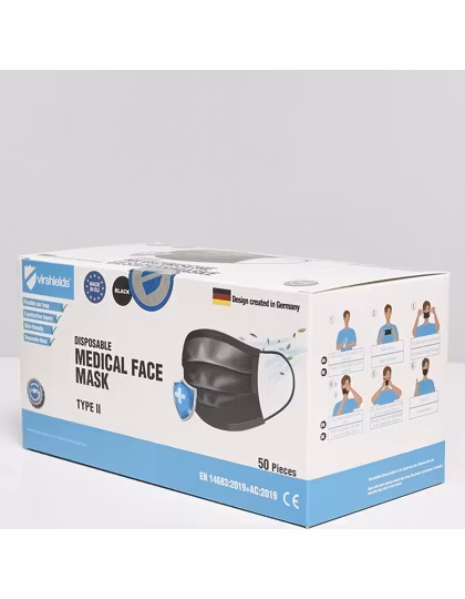 Medical Face Mask Typ II - 50-pack- Hel kartong 40 förp = 2000st munskydd Svart