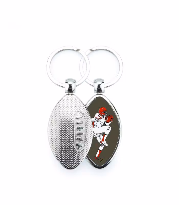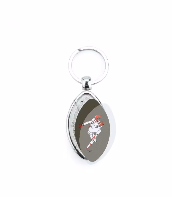 Denna Rugby/Amerikansk Fotboll-nyckelring är en originell och praktisk present för dem som gillar denna sport. Personlig på ena sidan och graverad som en Rugby/Amerikansk Fotboll på den andra.