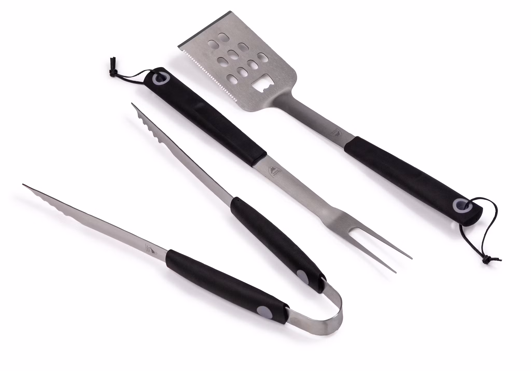 Stilrent grillset beståendes av en tång, en stekspade och en gaffel. Allt du behöver för att tillaga en perfekt middag på grillen. En snygg tygpåse med dragsko medföljer så att du även kan ge bort grillsetet som en fin present till grillmästaren!
