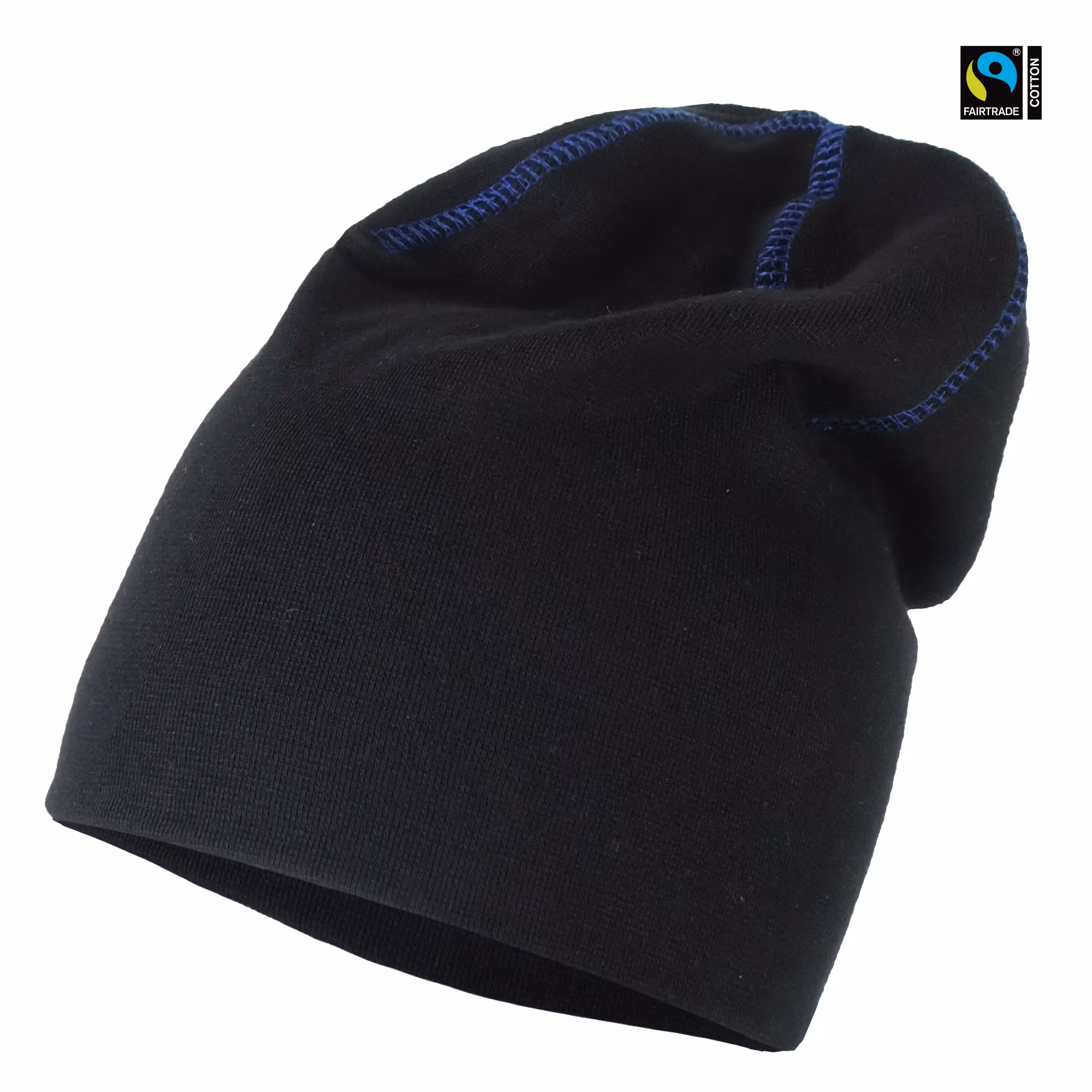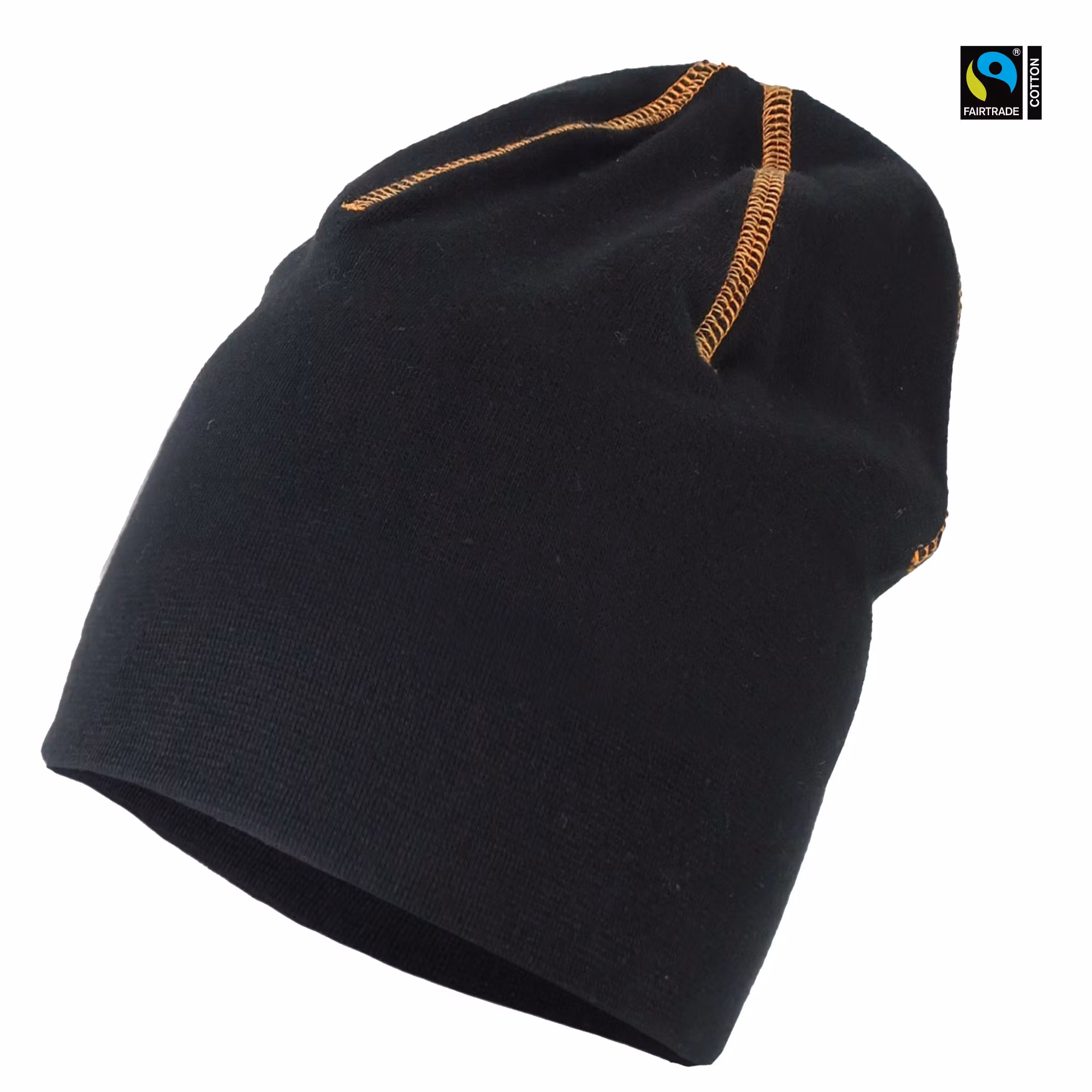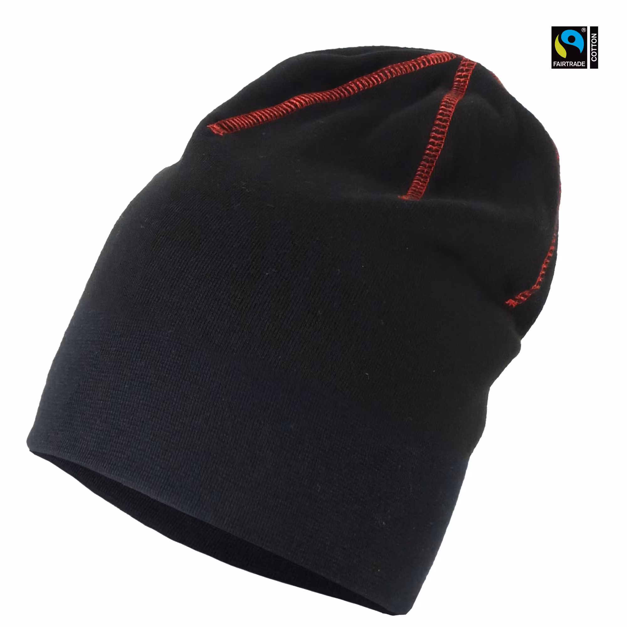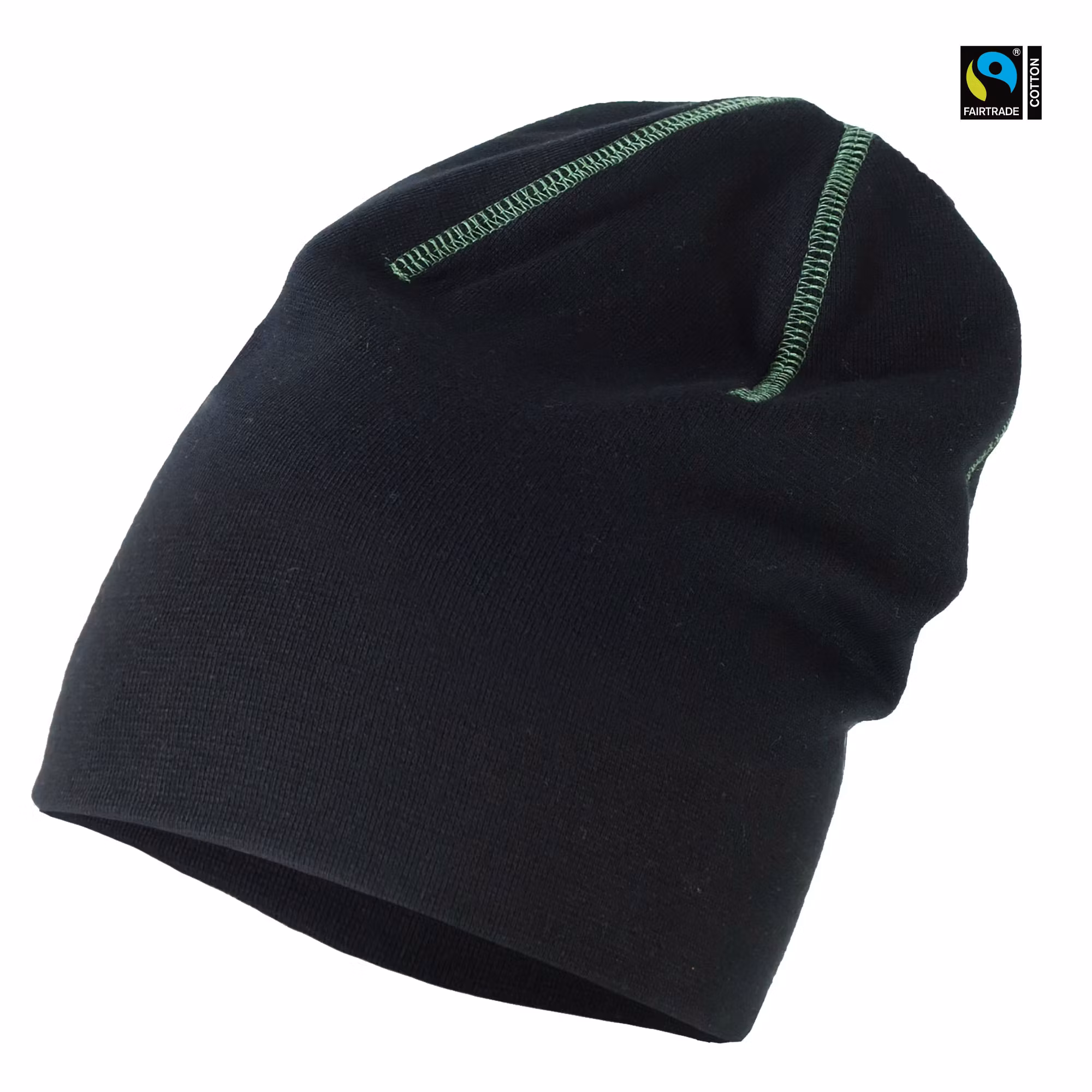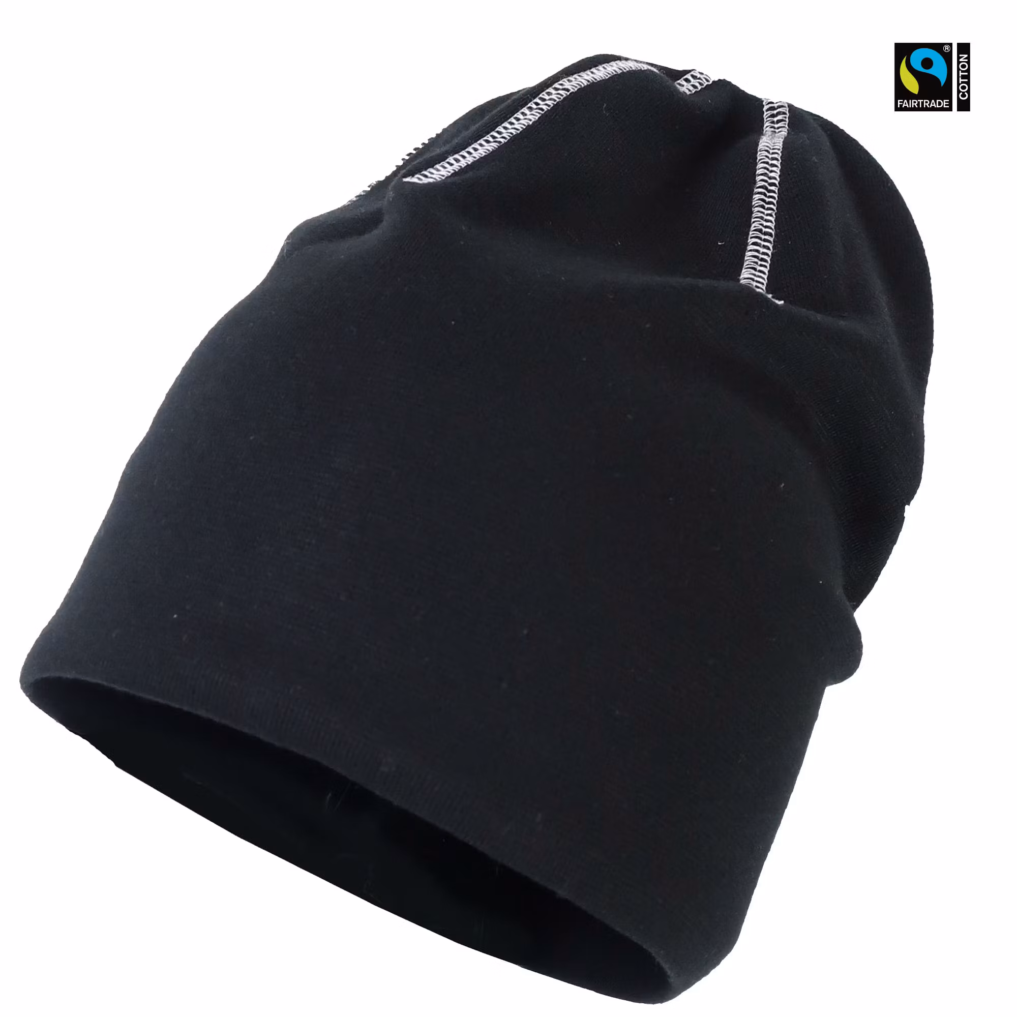 Mössa i ekologisk Fairtrade-ceritifierad bomull. 95% bomull och 5% elastan med kontrastsömmar av hög kvalitet från Black Hill.