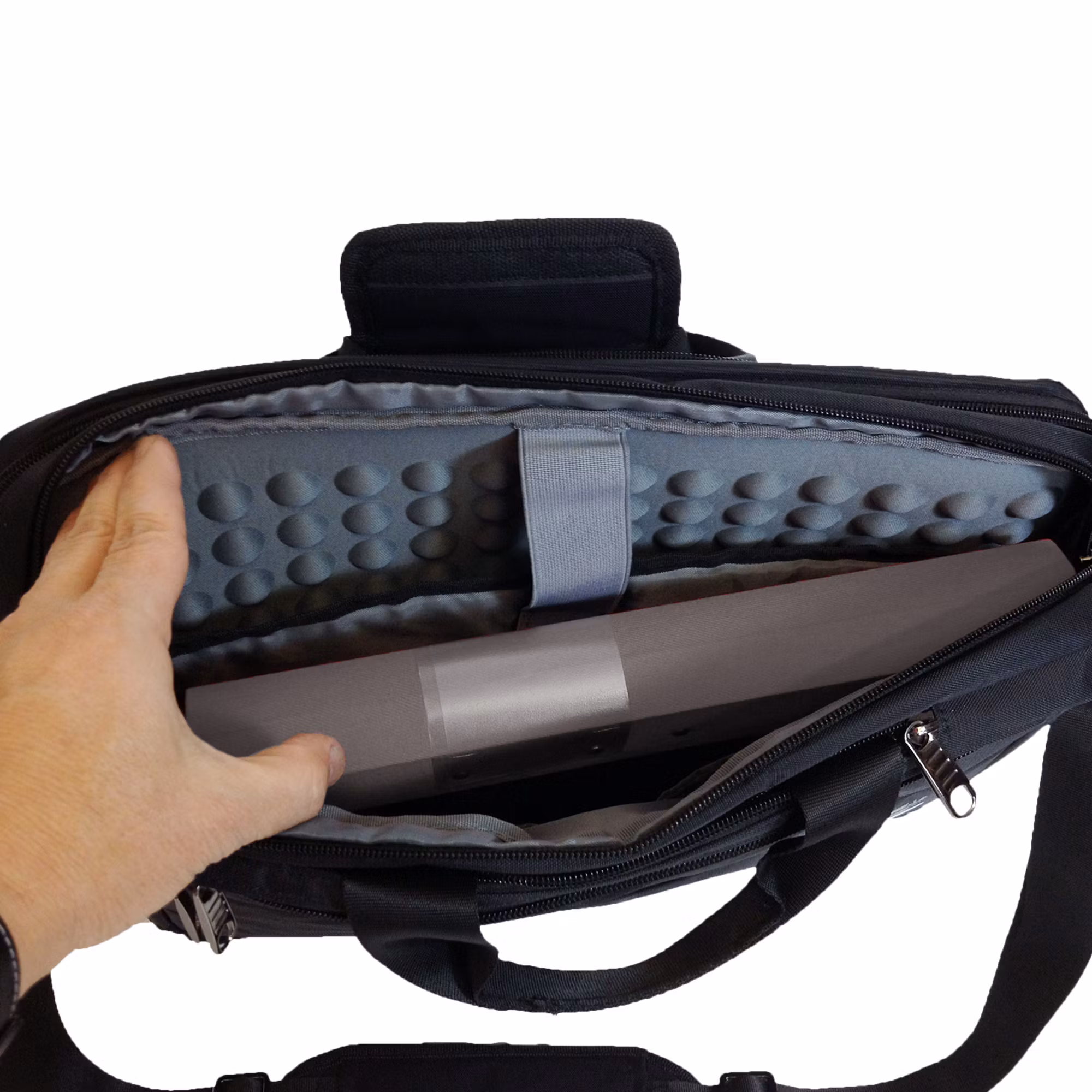 • Fyra-i-en-väska, använd som portfölj, axelväska eller fäst den på en trolley