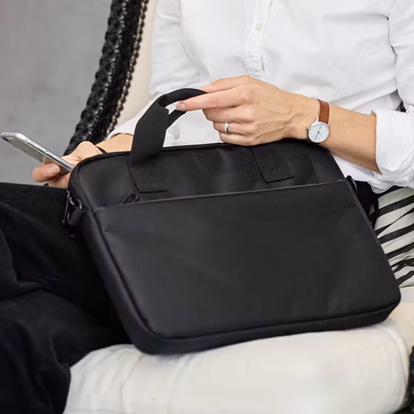 Väskan är smidigt formad och har plats för din laptop och arbetsmaterial som t.ex. pärm, mappar, skolböcker etc. En speciellt framtagen axelbandsplatta med extra hög friktion ser till att din väska inte glider av din axel.