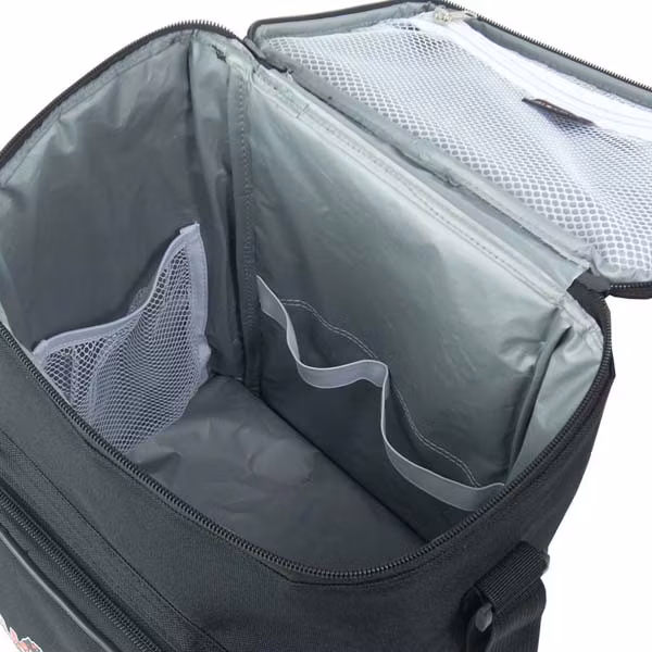 Den är cirka 20 liter varav ett stort kylfack med nätfickor för kylklampar, en dragkedjeficka på framsidan och nätficka på ena gaveln. Du får till exempel plats med stora PET-flaskor, matlådor och så vidare i huvudfacket. Smidig kylväska med axelrem för både arbete och fritid.
