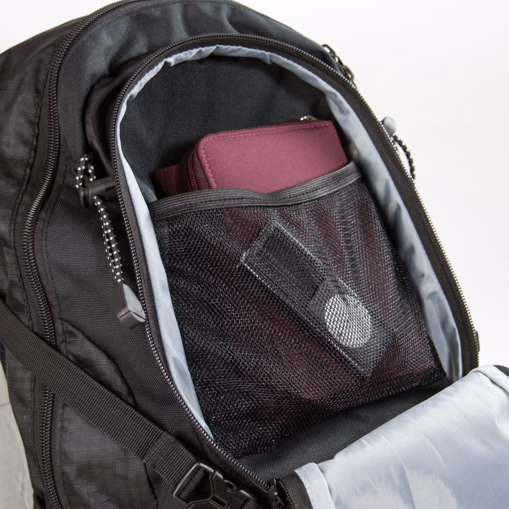 • Dragkedjeficka och dokumentfack i huvudfacket