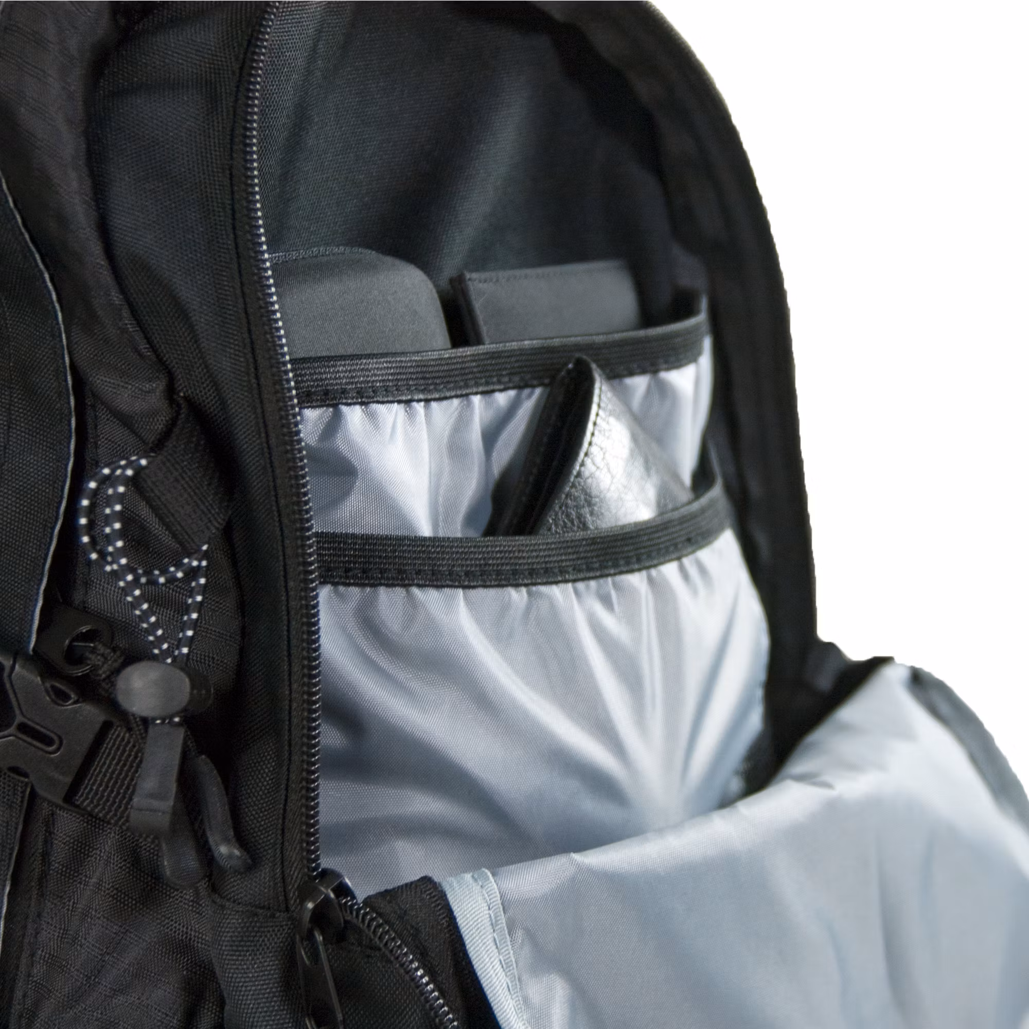 • Dragkedjeficka och dokumentfack i huvudfacket