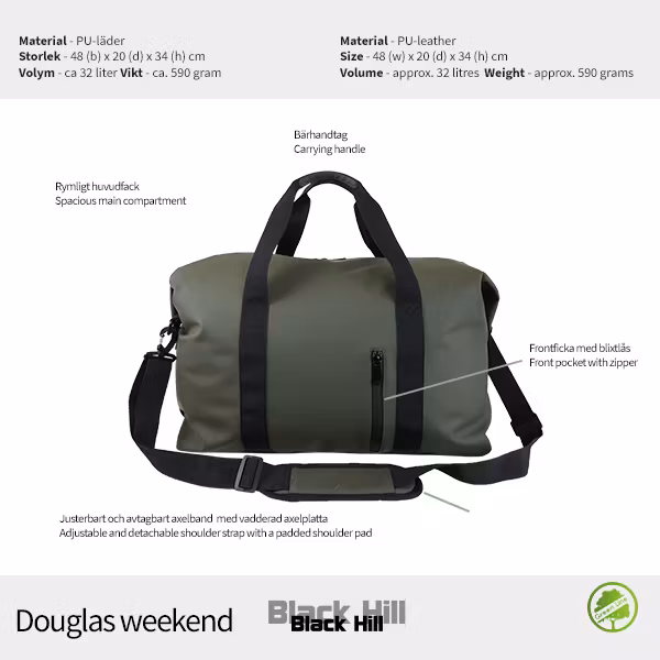 Väska från Black Hill med nytt modernt utseende. Väskan Douglas Weekend är tillverkad i PU-läder och är vattentålig.