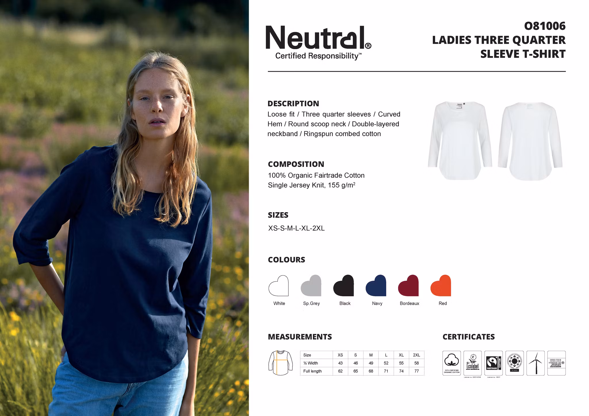 Neutral Ladies´ Three Quarter Sleeve T-Shirt