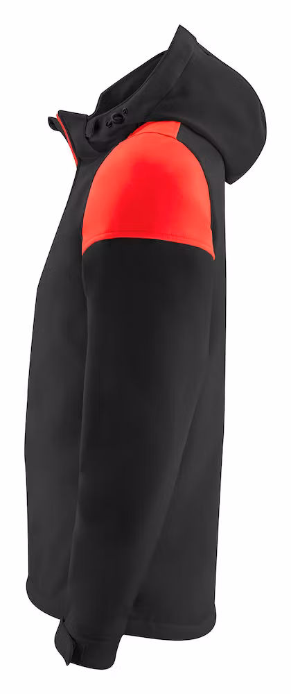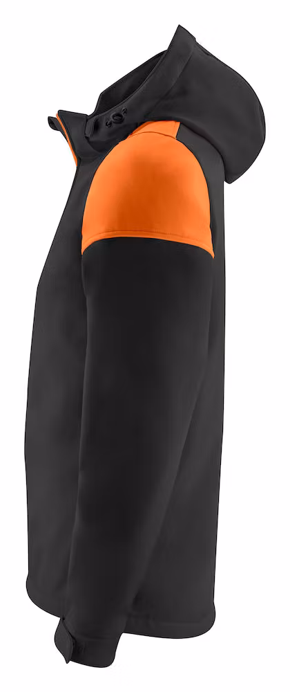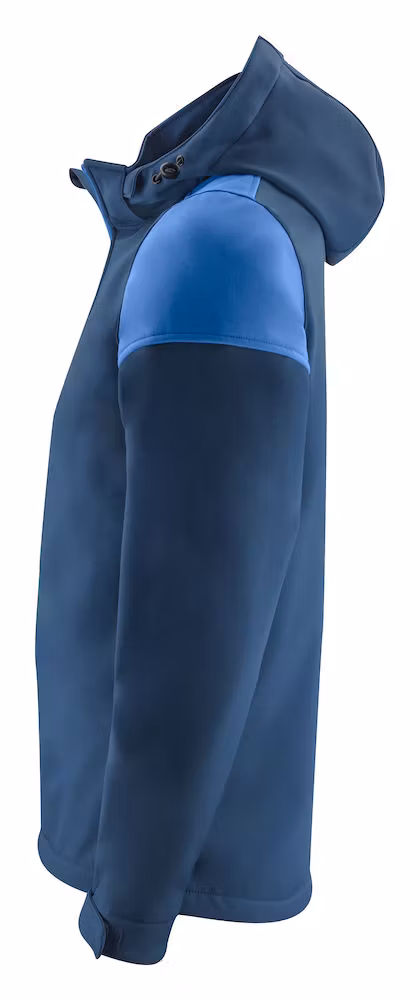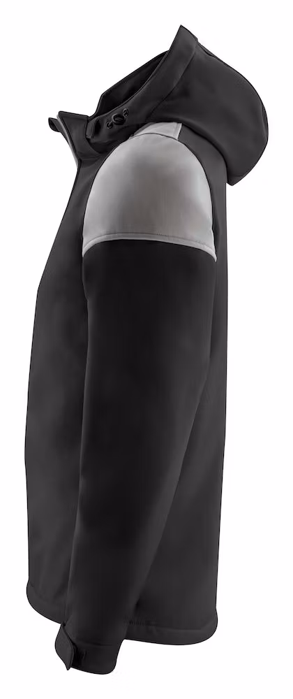 Tvåfärgad softshelljacka med avtagbar huva. Kontrasterande färg i dragkedja och zip-pullers. Kardborrejustering på ärm och elastisk snörning i huva och nederkant. Avrivbar nacketikett och separat storleksetikett. I vänster sidosöm finns tvättchipficka. Zip-pullers i fler färger säljs separat. Testad för industritvätt enigt ISO 15797. Oeko-Tex 100-certifierad och levereras i biobaserad, komposterbar påse.