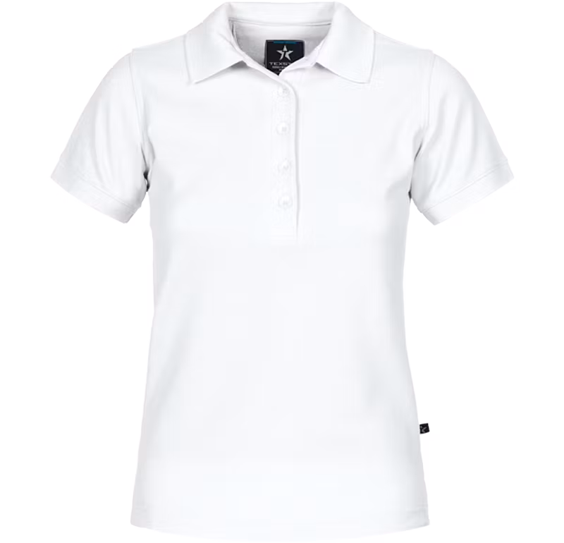 En klassisk kvalitetspiké med detaljer som sticker ut. Förutom att herrmodellen har en ficka på ena ärmen så har dammodellen en lite djupare halslinning och två extra knappar. En snygg widespread-krage håller formen och givetvis är den i 100 % bomull. Luftigt och skönt val som profiltröja eller i serviceyrken.