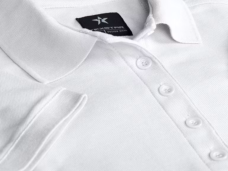 Snygg piké som tål lite tuffare tag. Med 50 % bomull och 50 % polyester är den slitstark, klarar tvätt i 60° och har extra hög färgäkthet. Fem knappar för damer, ficka på herrarnas ärm – och såklart skön passform för båda.
