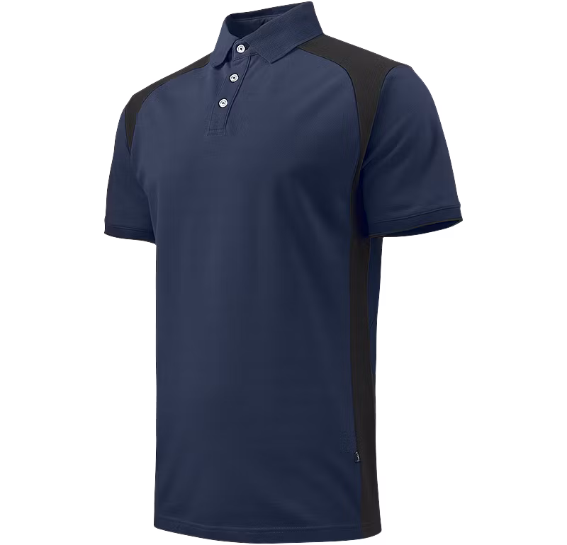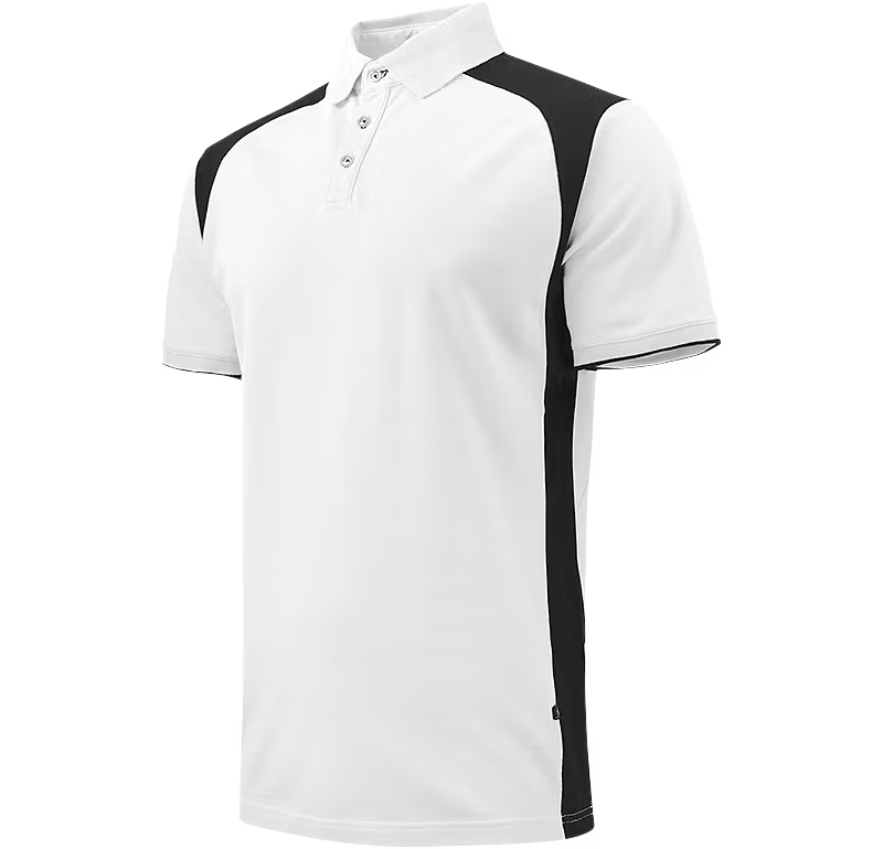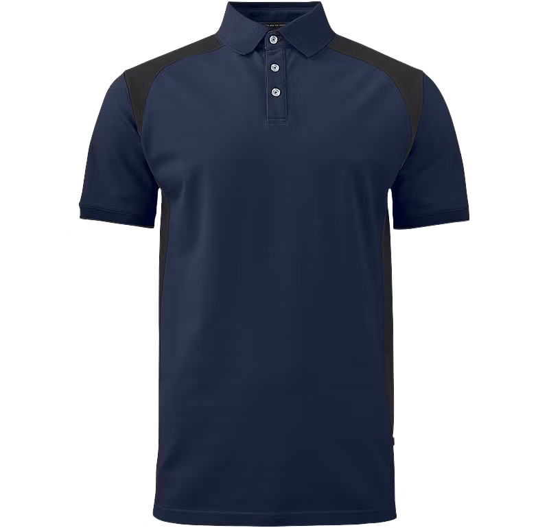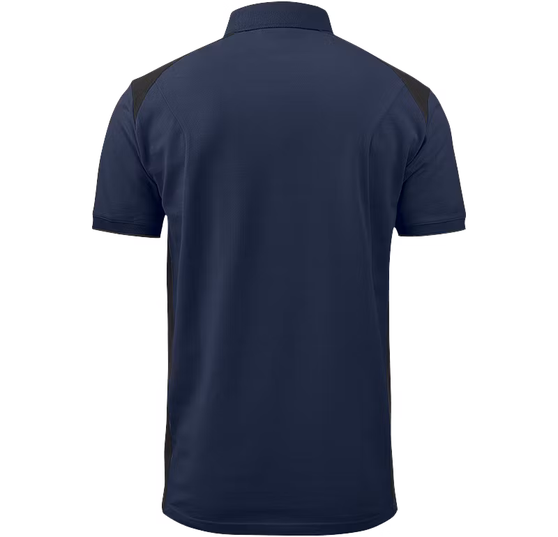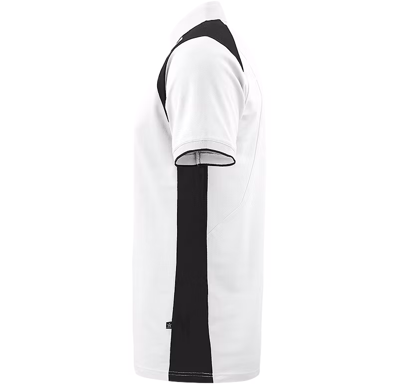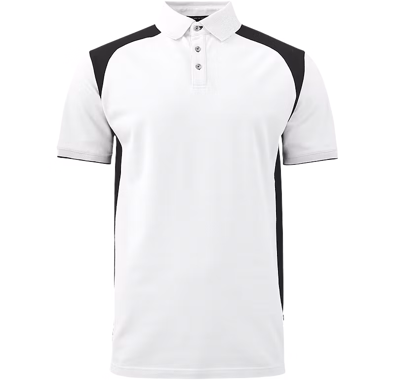 Pikétröja med tre knappar och kontrastfärg i sidopaneler, över axlarna och i ärmsluten. Med 5 % stretch sitter pikén perfekt på kroppen och du har större rörelsefrihet (snygg på kroppen även om du rör dig mycket). Unik skärning i ryggen. Snygga vita knappar, modernt elastiskt nackband som gör att plagget håller formen. Dammodellen har 5 knappar.