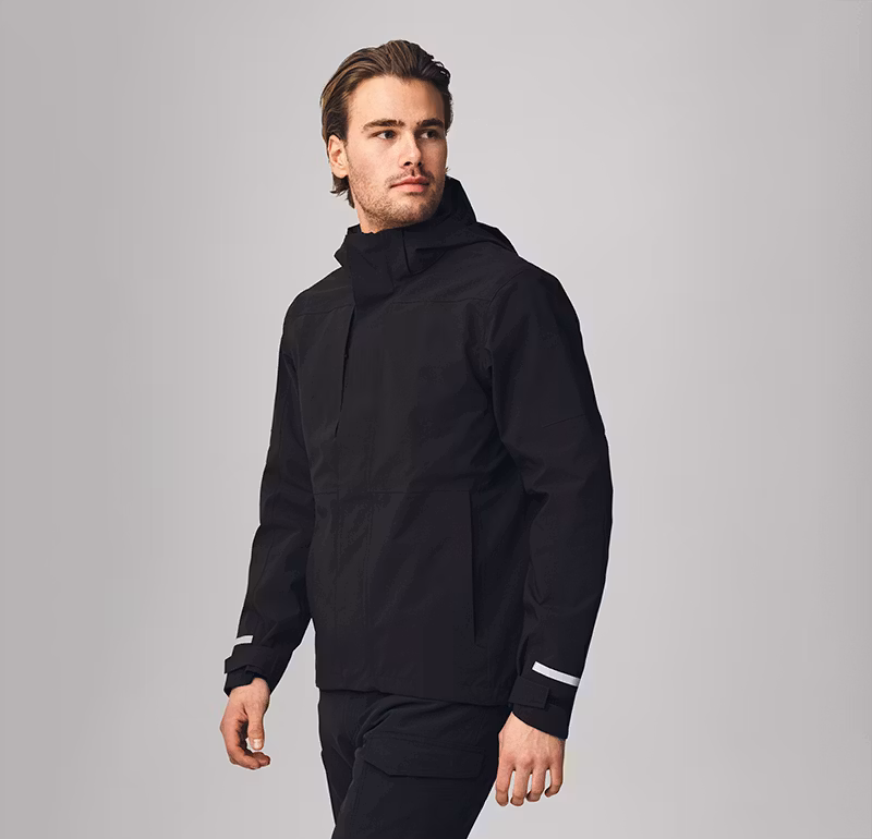 Skaljacka som är vind- och vattentätt med tejpade sömmar som skyddar dig mot de yttre elementen. En modern och snygg skaljacka, tryckta reflexer på rygg, huva och nederkant ärm. Avtagbar huva som är justerbar bak och med resår fram.