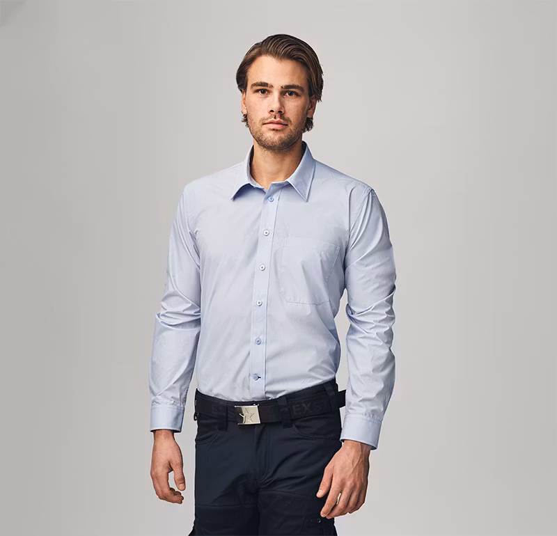 Vi är stolta över vår nya figursydda skjorta med modern affärslook. Tål mer tack vare blandningen av polyester och bomull, vilket också gör den mycket lättskött. Vi gillar den rena designen och den klassiska kragen. Att den klarar 60° tvätt är inte heller någon nackdel.