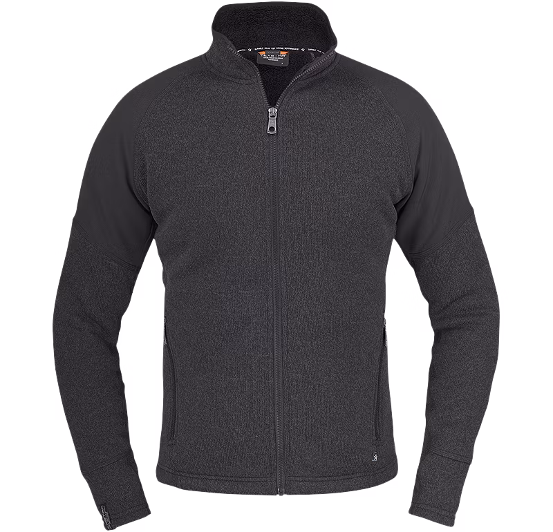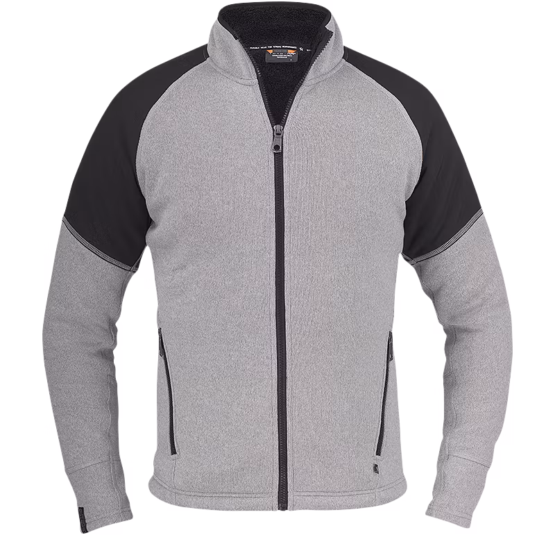En efterlängtad jacka med superskön insida i pile. Den mjuka insidan ger en skön känsla vid kyliga morgnar. Utsidan är snyggt stickad och har stretchpartier över axlar, överarmar och mellan skuldrorna – en naturlig plats för tryck och brodyr. Raglanärm för bättre rörlighet i axel och arm. Två sidofickor med borstad insida för varma händer. Dragsko i nederkant. Ordentlig dragkedja och puller för bättre grepp.
