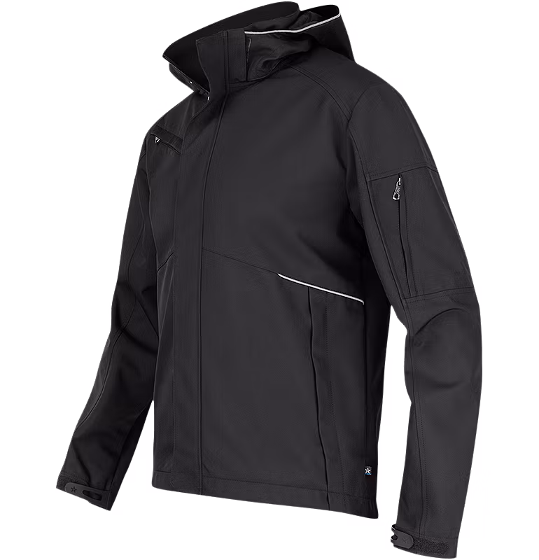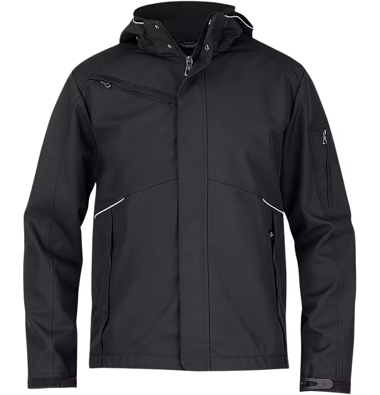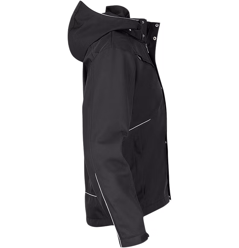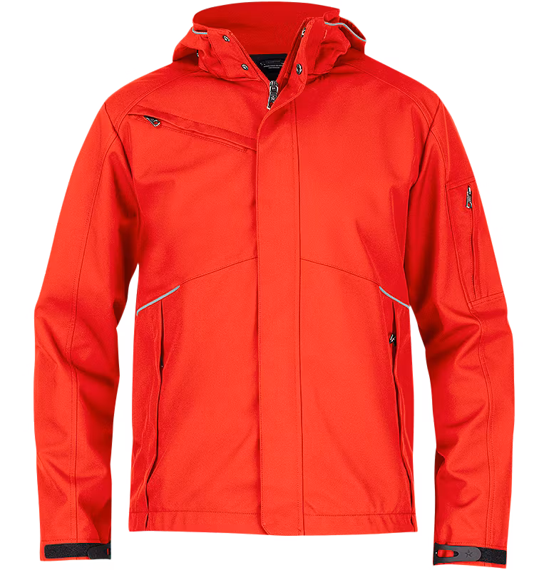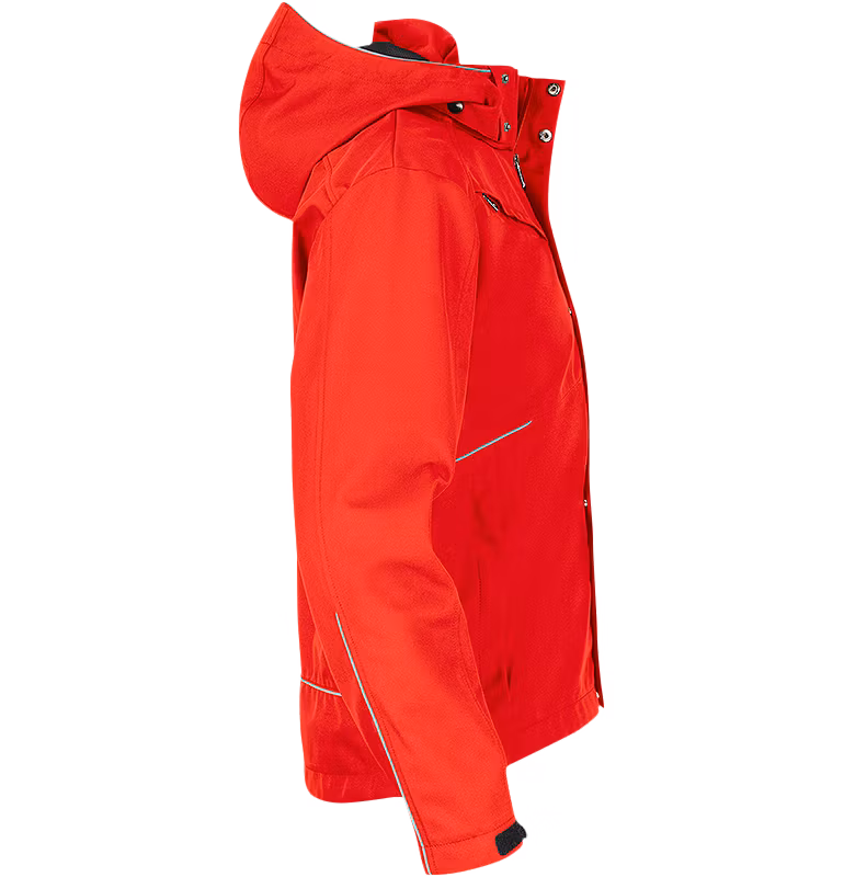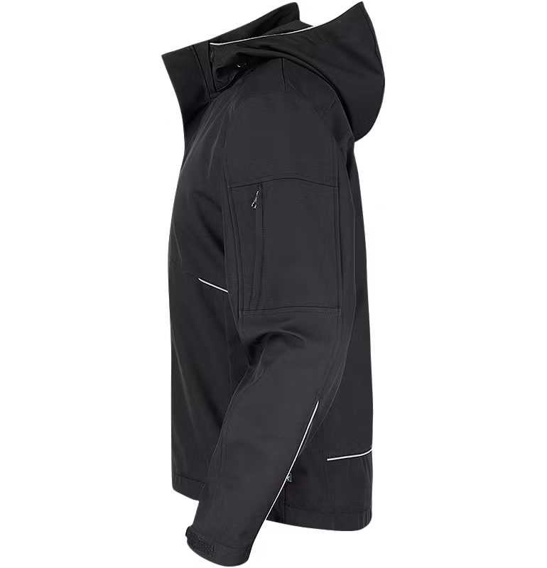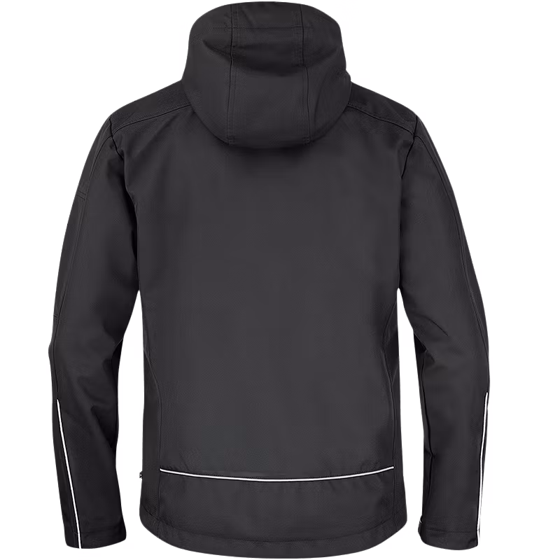 Vår nya härliga 3-lagers softshelljacka som är vind- och vattenavvisande för lite tuffare dagar. Denna moderna och snygga softshelljacka som passar de flesta tillfällen. Softshelljackan har löstagbar justerbar huva med hög krage, där blixtlåset går ända upp. Dragkedja under ärmarna för extra ventilation. Bröstficka på höger sida med D-ring och ärmficka på vänster ärm med blixtlås. Två sidofickor med blixtlås, reflexpiping på huva, ärm ovan fickor och på ryggen med dragsko i nederkant.