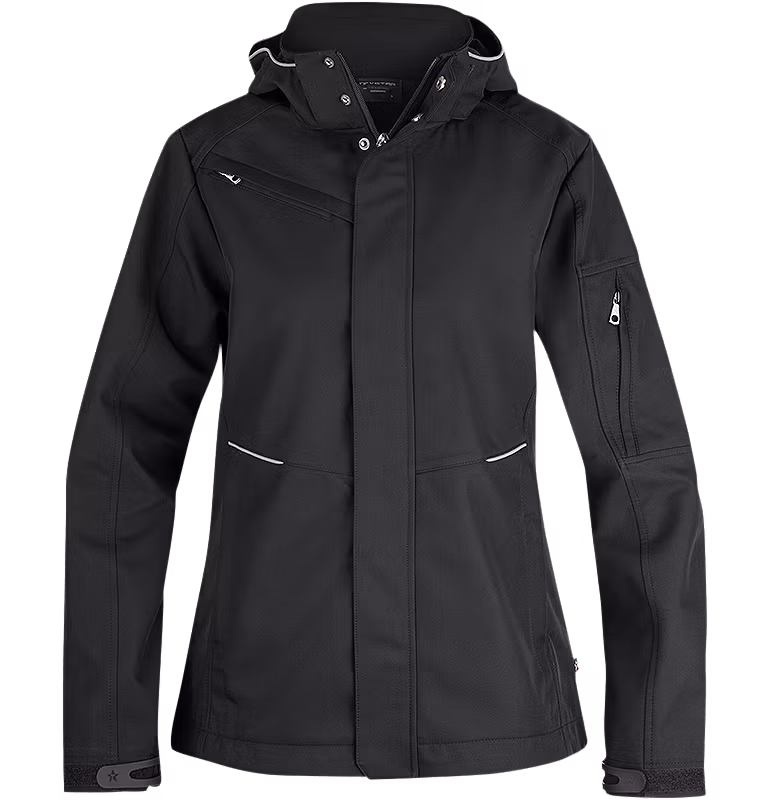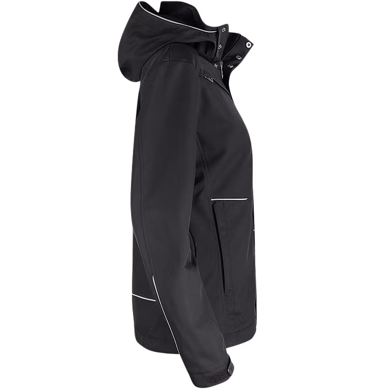 Vår nya härliga 3-lagers softshelljacka som är vind- och vattenavvisande för lite tuffare dagar. Denna moderna och snygga softshelljacka som passar de flesta tillfällen. Softshelljackan har löstagbar justerbar huva med hög krage, där blixtlåset går ända upp. Dragkedja under ärmarna för extra ventilation. Bröstficka på höger sida med D-ring och ärmficka på vänster ärm med blixtlås. Två sidofickor med blixtlås, reflexpiping på huva, ärm ovan fickor och på ryggen med dragsko i nederkant.