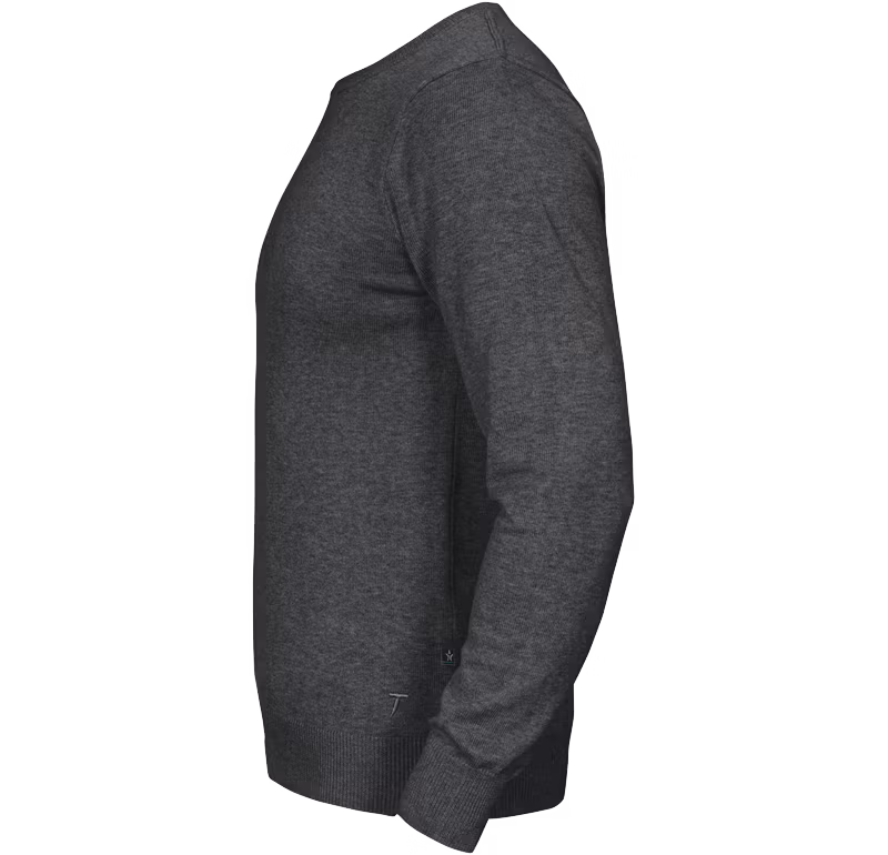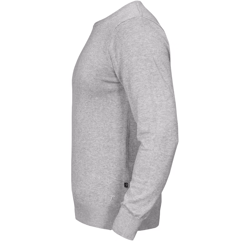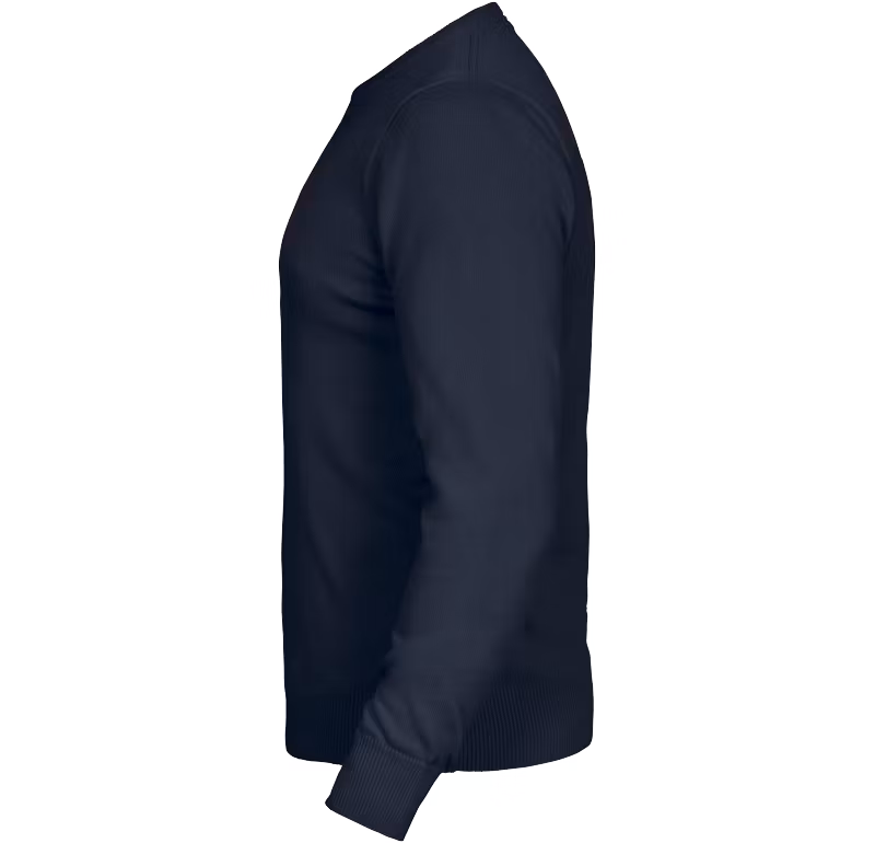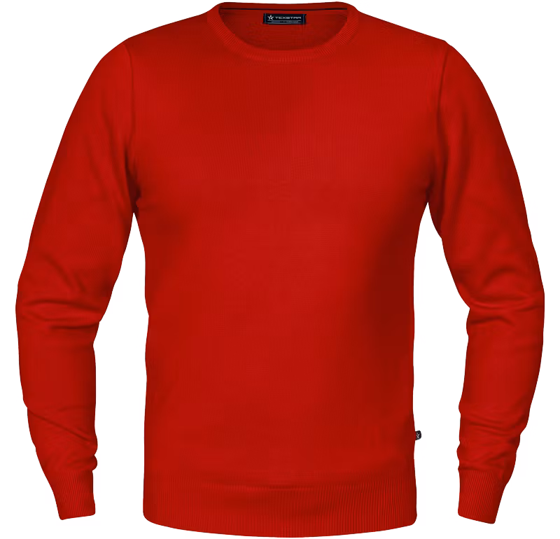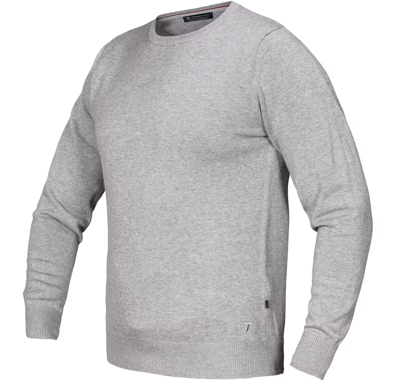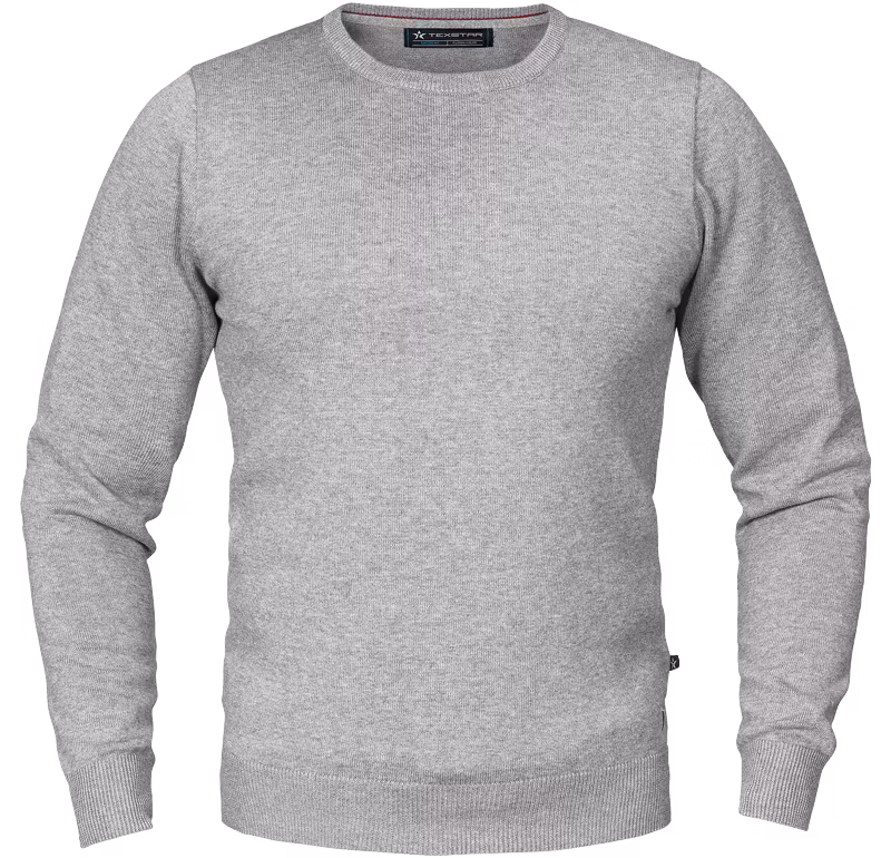 En härligt rundhalsad pullover i både herr och dammodell. En skön stickad tröja i 100% bomull med en modern passform som tål att tvättas utan att tappa formen.