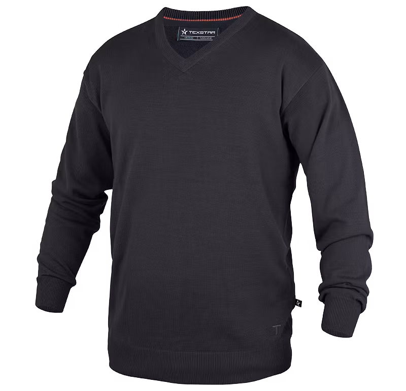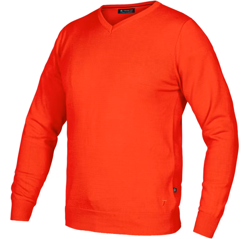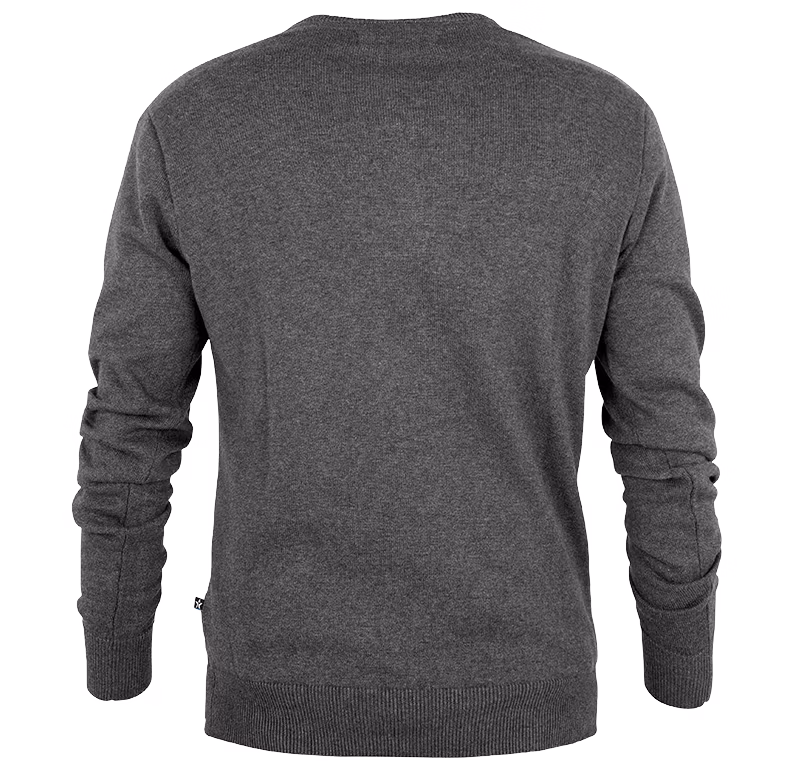 En riktigt skön stickad tröja för både honom och henne i 100% bomull. Används med fördel över en av våra skjortor för en dressad och snygg look på jobbet. Pullovern har god, modern passform som tål att tvättas utan att tappa formen. Halsen är v-formad och muddarna är härligt rejäla.
