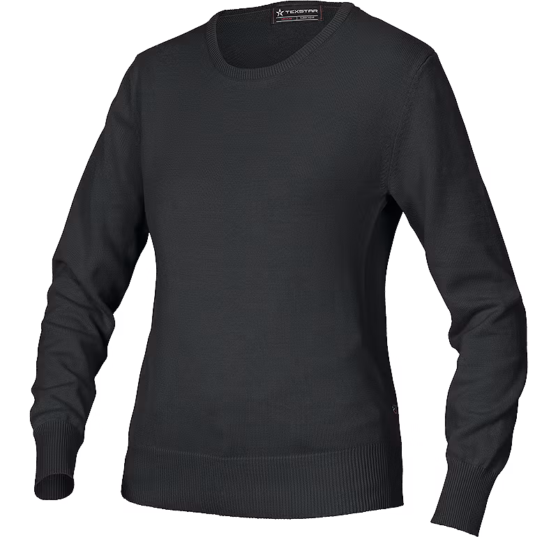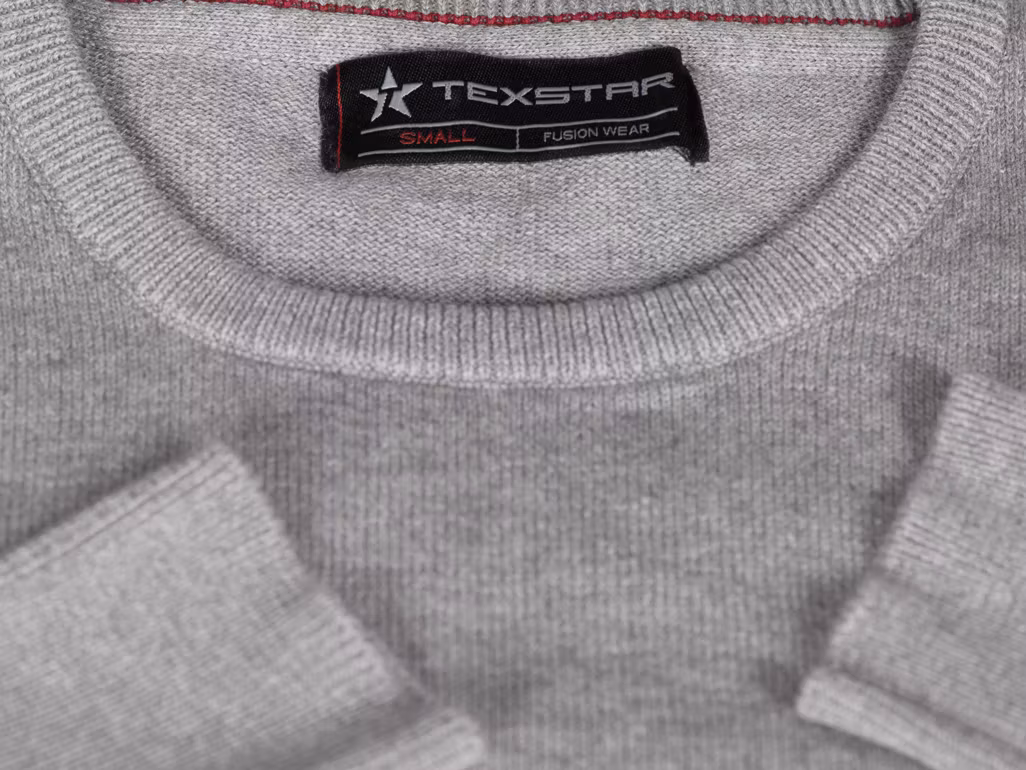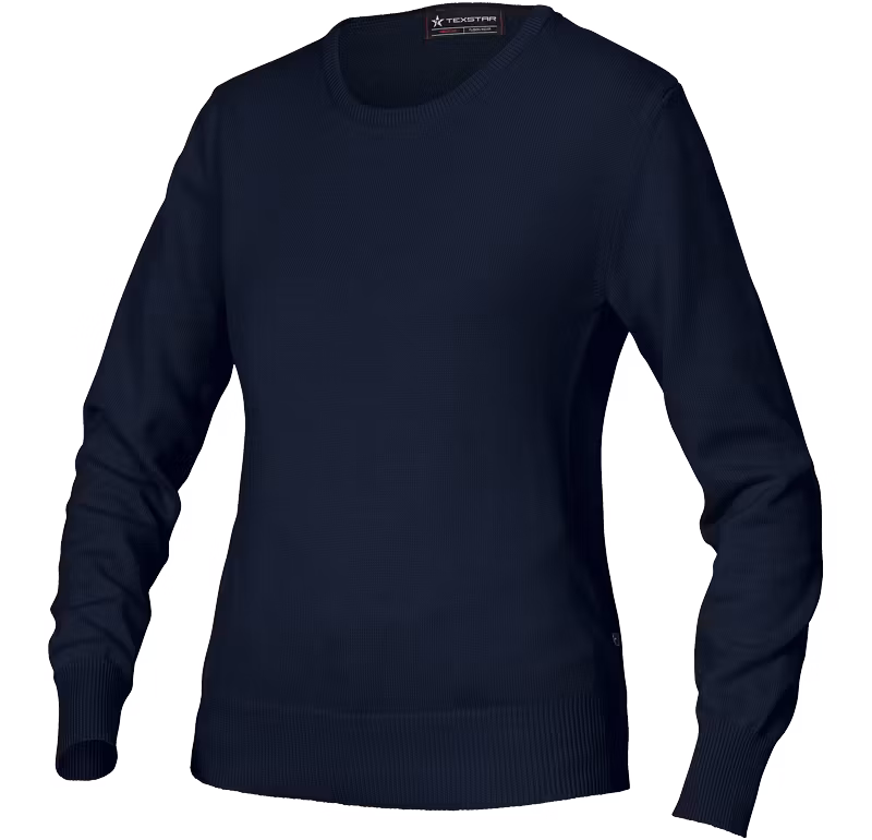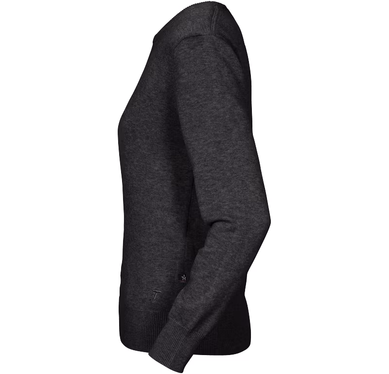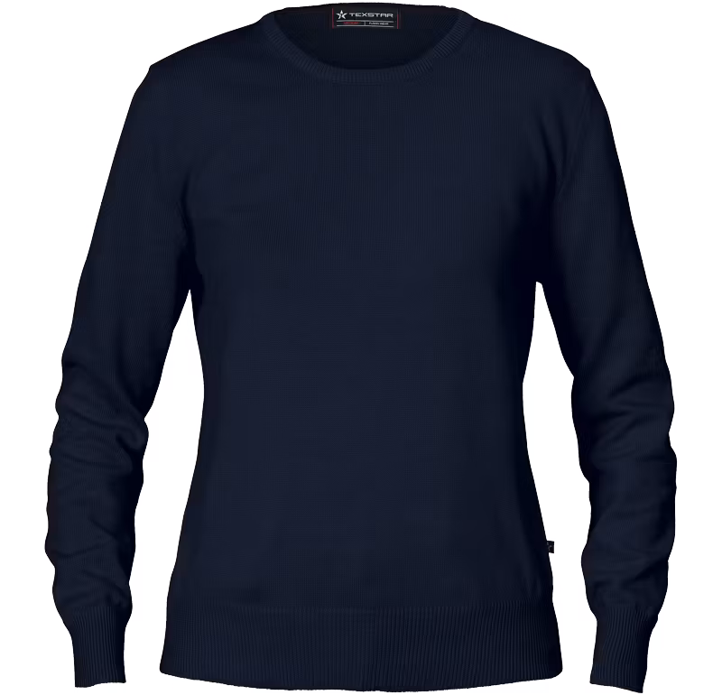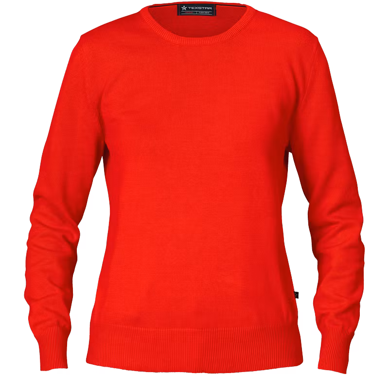 En härligt rundhalsad pullover i både herr och dammodell. En skön stickad tröja i 100% bomull med en modern passform som tål att tvättas utan att tappa formen.