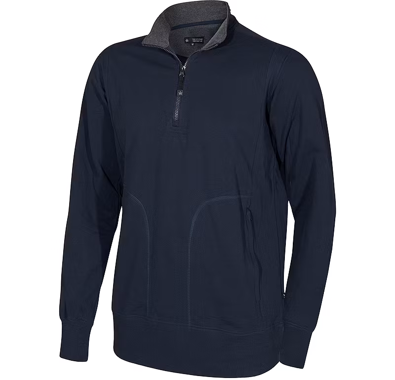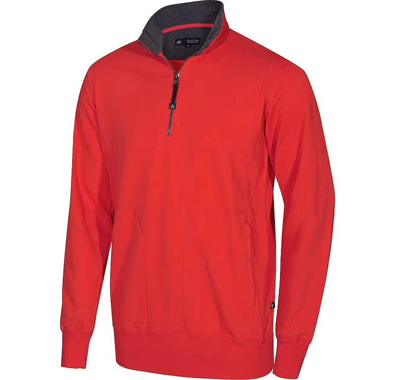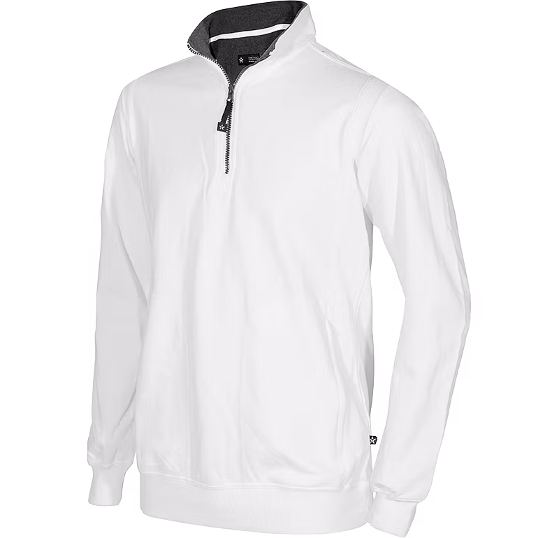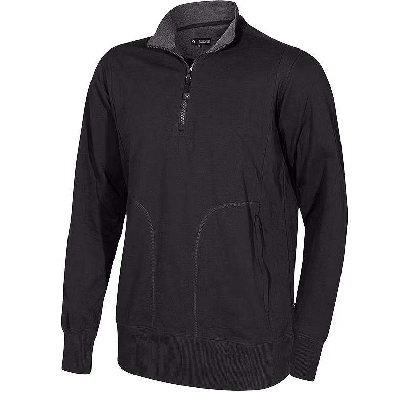 Vår Crew T-neck har öglad insida. Det innebär att luften kan cirkulera bättre och den blir extra luftig och sval när du rör dig mycket. Kan bäras hela dagen och samtidigt bibehålla en behaglig temperatur. Insidan av kragen är i en kontrasterande färg och i halsen sitter ett blixtlås som går ända upp.
