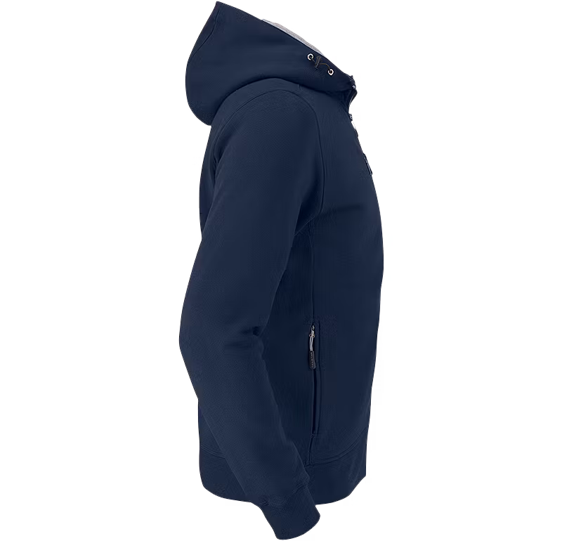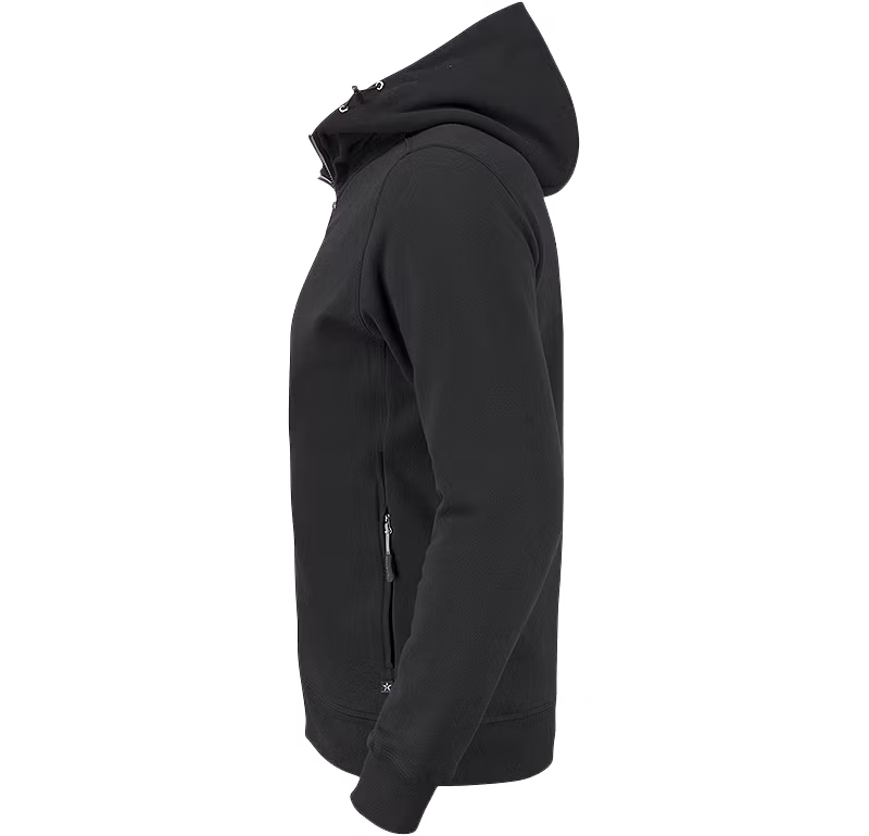 En riktigt lyxigt skön huvtröja. Den höga kragen och den fina huvan känns härligt ombonat. Med sina många detaljer blir den en favorit man gärna har på sig. Ärmarna har rejäla muddar – extra rejäla på dammodellen – och en snygg bröstficka ger karaktär med sin grova dragkedja. Givetvis med en snygg puller. Fickorna i sidan kan stängas där dragkedjan döljs och förstärker den snygga skärningen.