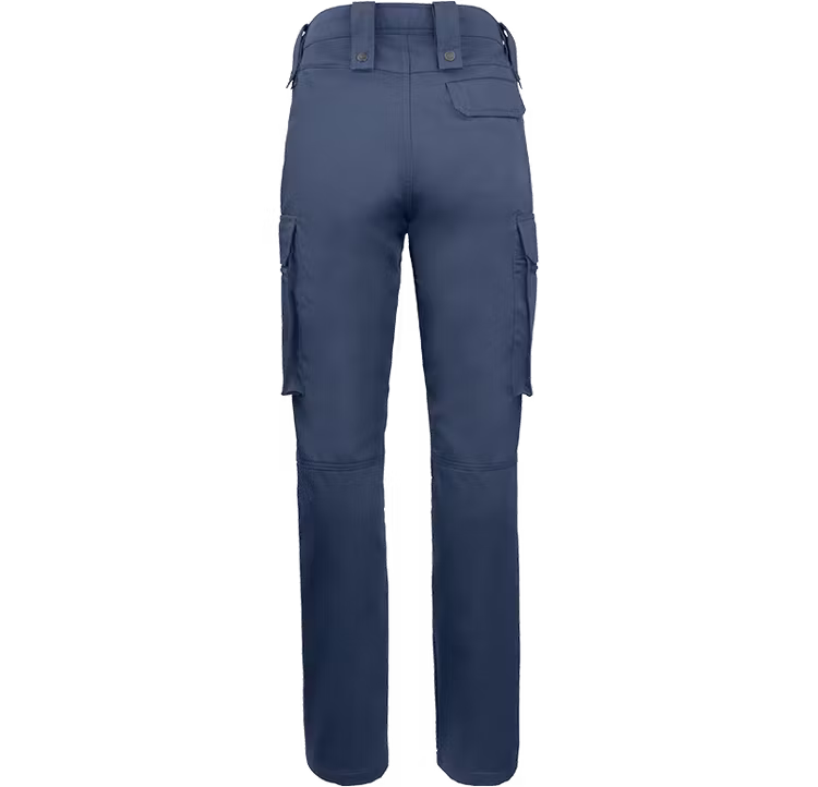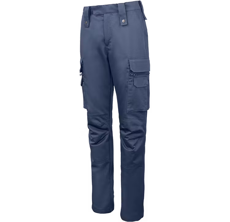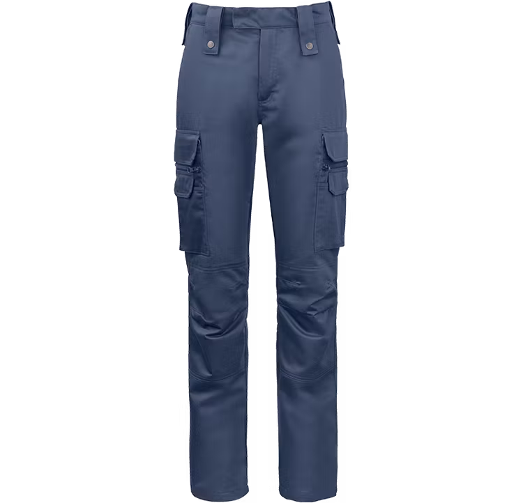 Rejäl ordningsvaktsbyxa med snyggt skurna raka ben, anpassad för både honom och henne. Dubbla benfickor med pennöppning, en mindre utanpåficka med lock och två större fickor med dragkedja även under locket. Byxan har en bakficka och “anti-slip” band på insidan av linningen. Förböjda knän med plats för knäskydd.