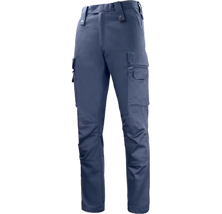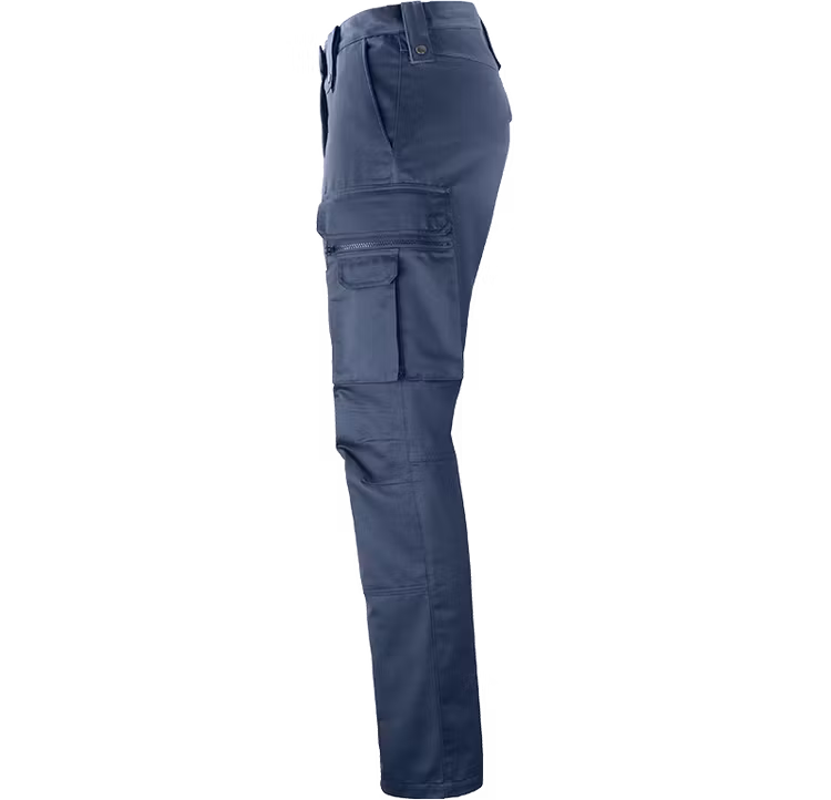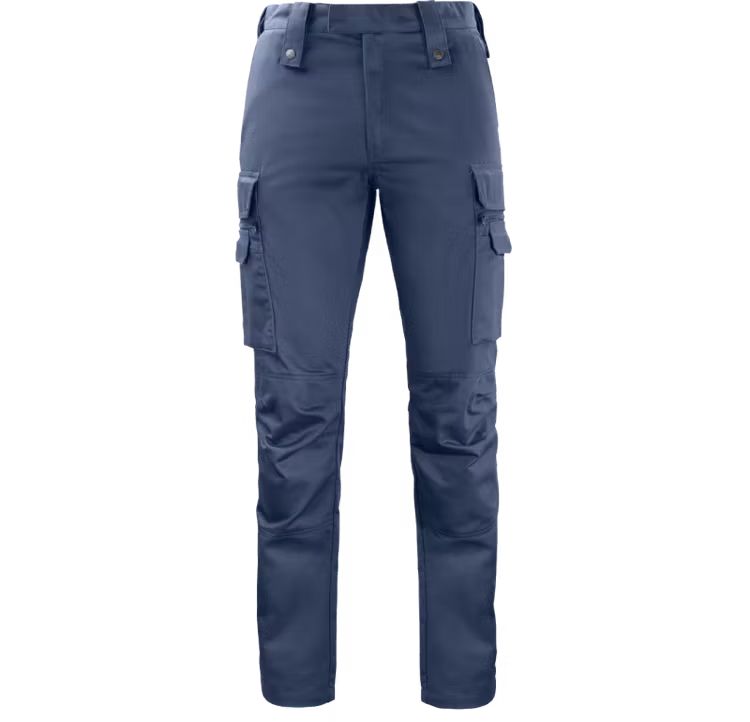 Rejäl ordningsvaktsbyxa med snyggt skurna raka ben, anpassad för både honom och henne. Dubbla benfickor med pennöppning, en mindre utanpåficka med lock och två större fickor med dragkedja även under locket. Byxan har en bakficka och “anti-slip” band på insidan av linningen. Förböjda knän med plats för knäskydd.
