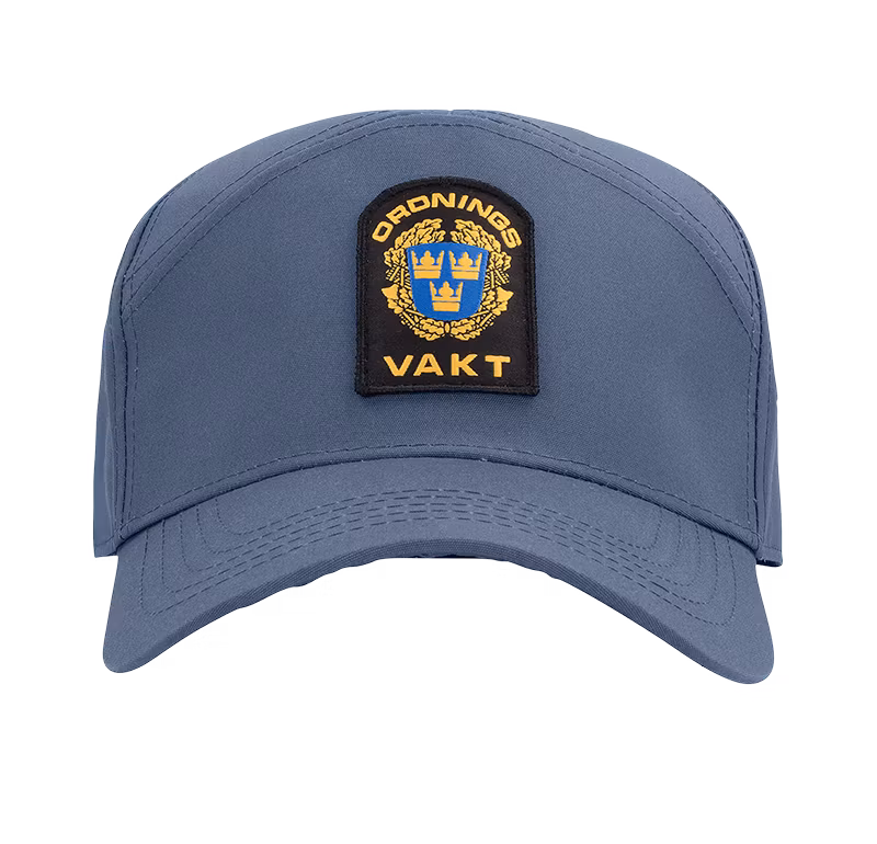 Keps för ordningsvakt med emblem och justering. Den blå färgen är godkänd NCS 7015-R90B enligt Polisens FAP 670-1 (PMFS 2017_12)