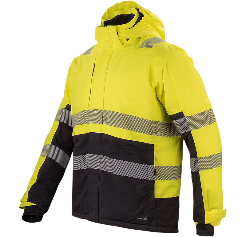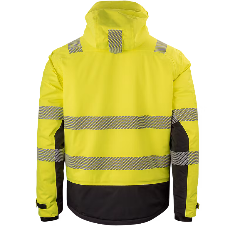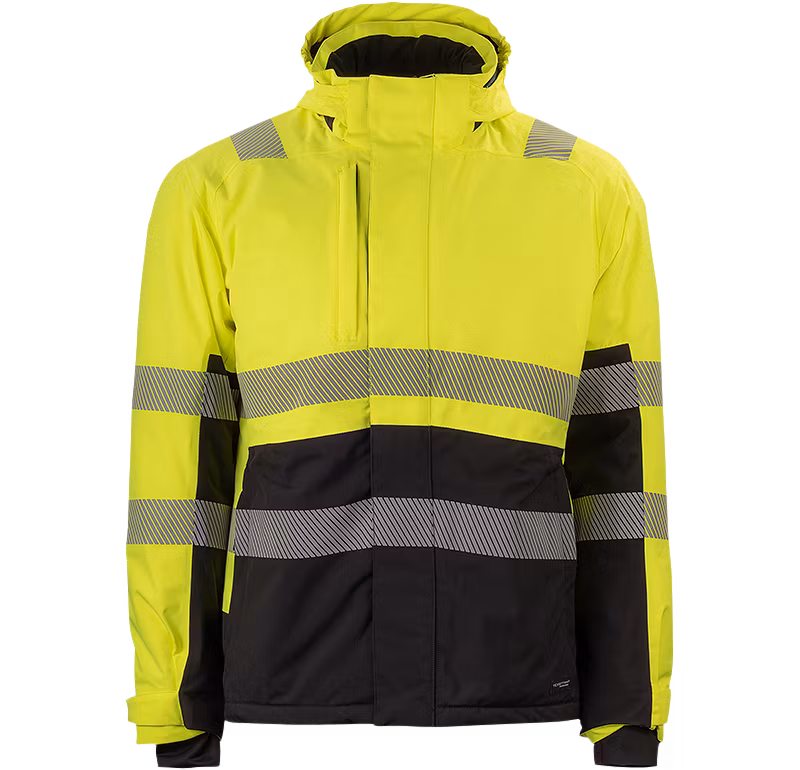 Den avtagbara huvan skyddar skönt när det biter i kinderna. Vattentät modell som andas, skönt fodrad i 100% polyester. Mudd i ärmslut skyddar mot kyla. En bröstficka, sidofickor och en innerficka i mesh, perfekt för vantarna. Jackan uppfyller ISO 343 för skydd mot regn. Den har även en smuts- och vattenavvisande behandling för att klara nedsmutsning, utan att tappa varselegenskaperna. Miljömärkt Oeko-Tex standard 100. Uppfyller kraven enligt EN ISO 20471, klass 3.